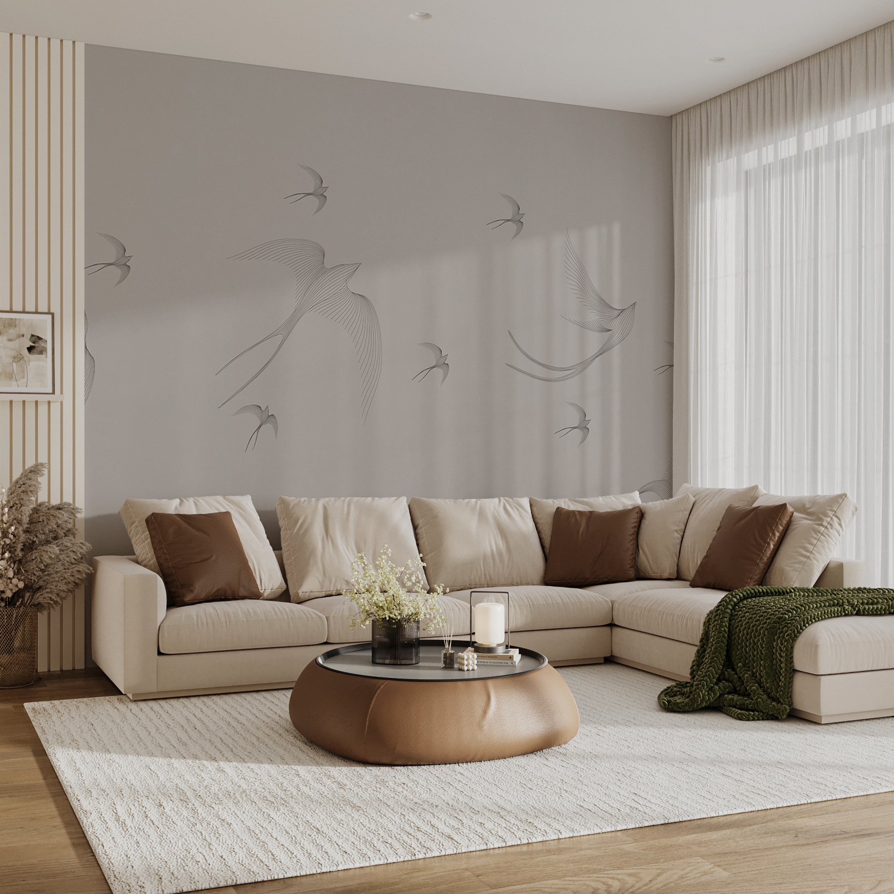 Transformez un mur terne en un ciel à couper le souffle avec le “Groupe d’oiseaux en vol”. Cette peinture murale capture une danse gracieuse d’oiseaux s’élevant dans les airs, apportant une ambiance légère et aérée à n’importe quelle pièce. Imaginez-vous en train de siroter votre café le matin, en jetant un coup d’œil à ces élégantes créatures qui semblent voler tout près de vous. Les couleurs douces évoquent le calme et la sérénité, ce qui est parfait pour un coin lecture confortable ou un espace de bureau stimulant. C’est comme si vous aviez un morceau de nature à l’intérieur, rappelant à tout le monde qu’il y a toujours de la place pour la liberté et l’envol, même dans les vies les plus occupées. Laissez vos murs s’envoler !
