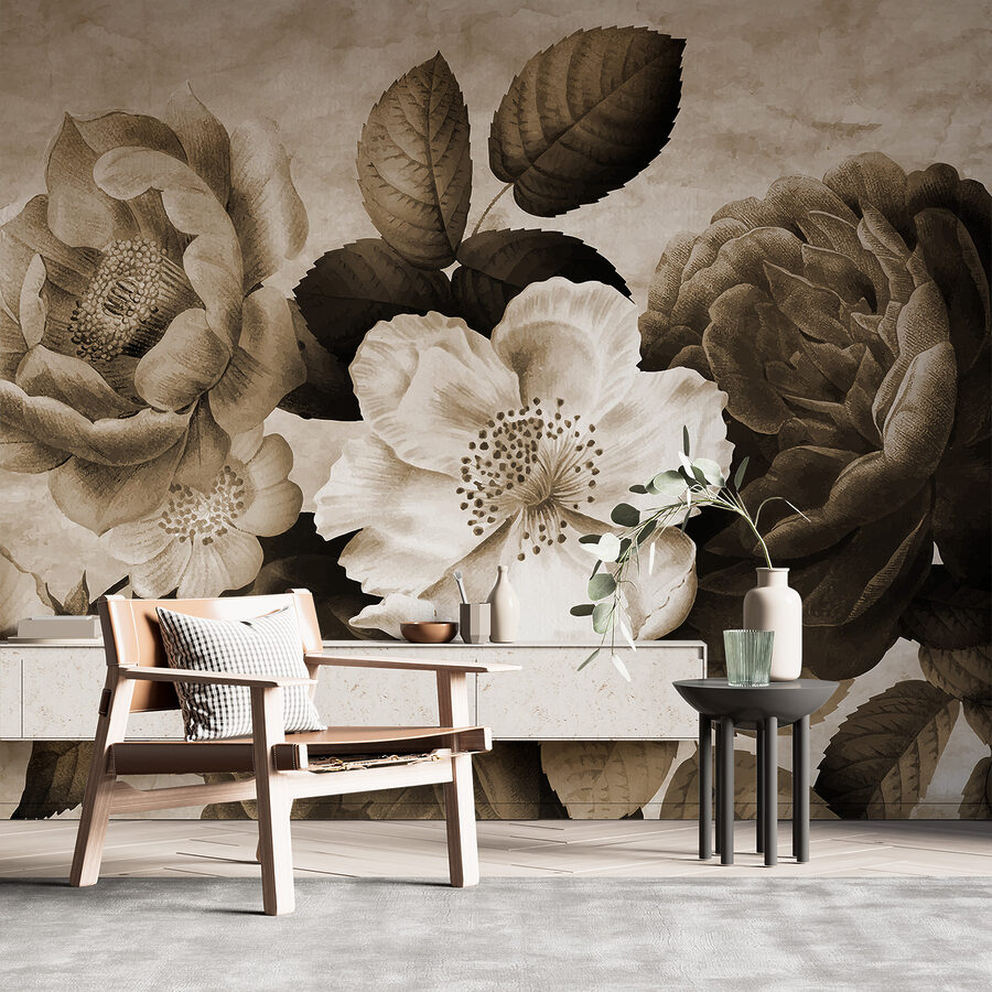 Entrez dans un monde de rêve avec la peinture murale Blossoms in Sepia Tones. Cette peinture murale ne se contente pas de recouvrir un mur, elle transforme un espace entier en lui apportant chaleur et charme. Imaginez que vous sirotiez votre café du matin alors que des fleurs douces et délicates attirent votre attention, chaque pétale murmurant des histoires de jardins sereins. Les tons sépia offrent une ambiance chaleureuse et vintage, parfaite pour un coin lecture ou une chambre à coucher calme. C’est comme un doux câlin pour vos murs. Et qui n’aime pas un peu de nostalgie mêlée à la nature chez soi ? Il est temps de laisser ces murs s’épanouir !