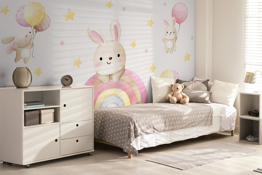 Voici “Papier peint w01332v1” – la petite touche de joie fantaisiste que vous adorerez ! Cette peinture murale a tout ce qu’il faut pour créer un espace charmant : de mignons lapins, de douces couleurs pastel et un arc-en-ciel enchanteur. Imaginez une chambre d’enfant baignant dans cette douce et réconfortante lueur… Ou même un coin lecture confortable se sentant instantanément plus heureux ! Les lapins espiègles tenant des ballons, entourés de petites étoiles, font de cette peinture murale un véritable rêve éveillé. C’est un soupçon de magie – comme un câlin pour vos murs ! Parfait pour tous ceux qui aiment les fantaisies et les sourires.