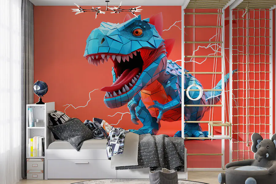 Le fond rouge saisissant fait ressortir sans effort le dinosaure géométrique bleu. C’est presque comme si vous pouviez l’entendre rugir ! Idéal pour ajouter de la profondeur et de l’excitation à n’importe quel espace, qu’il s’agisse d’un salon audacieux, d’une chambre d’enfant aventureuse ou d’un bureau excentrique.