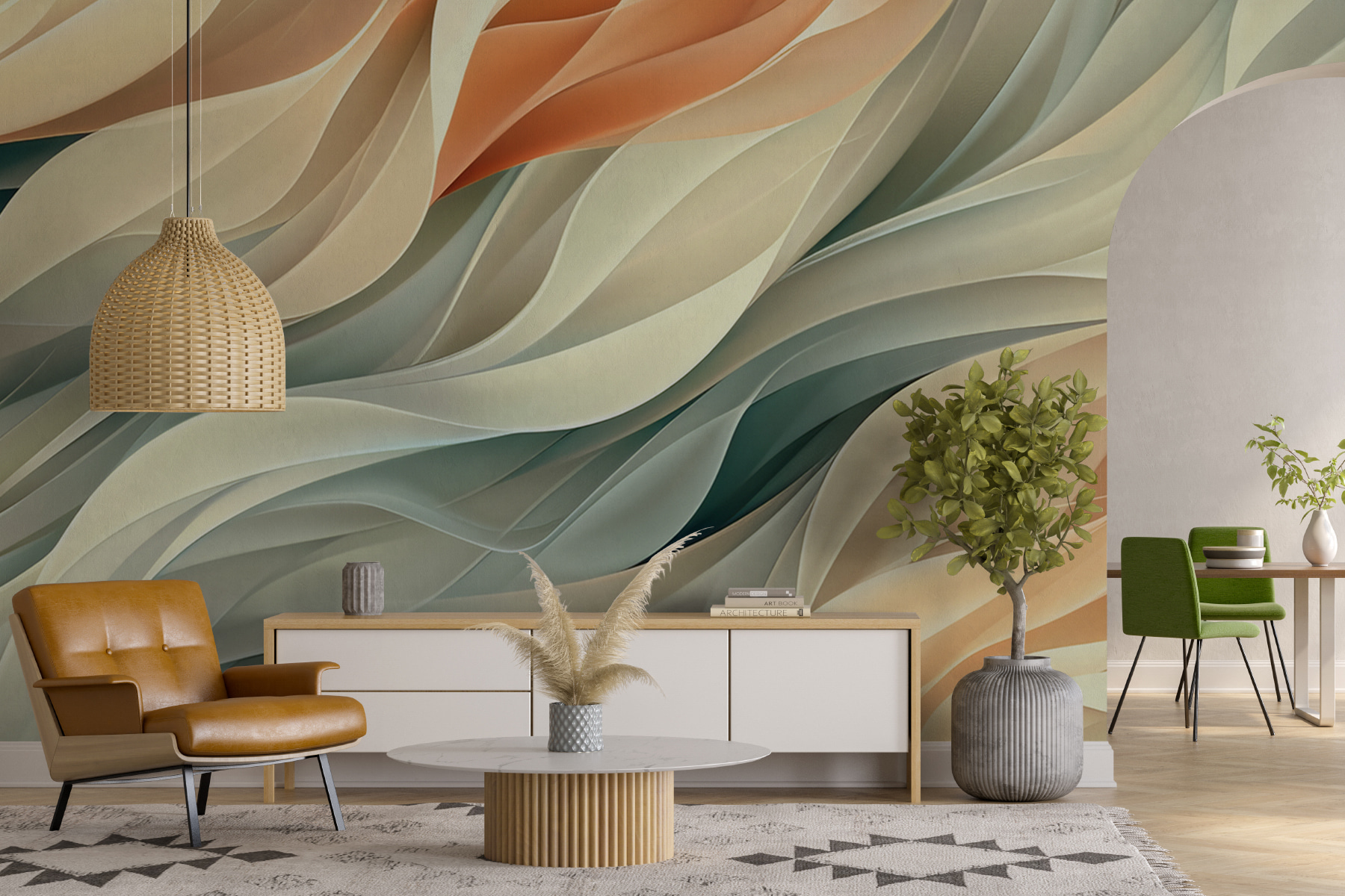 Vous connaissez ce sentiment lorsque vous entrez dans une pièce et qu’elle est tout simplement époustouflante ! C’est le cas de “Papier peint w01335v1”. C’est un tourbillon de pastels froids et de tons chauds, un peu comme si vous regardiez une douce brise jouer avec les vagues. Ce n’est pas seulement une peinture murale… c’est une expérience. Imaginez-la dans un salon où se déroulent vos meilleures conversations, ou dans une chambre à coucher où vos rêves s’envolent. Le motif géométrique en 3D ajoute une touche d’élégance moderne, mais il est aussi douillet et invitant, comme un câlin pour vos murs !