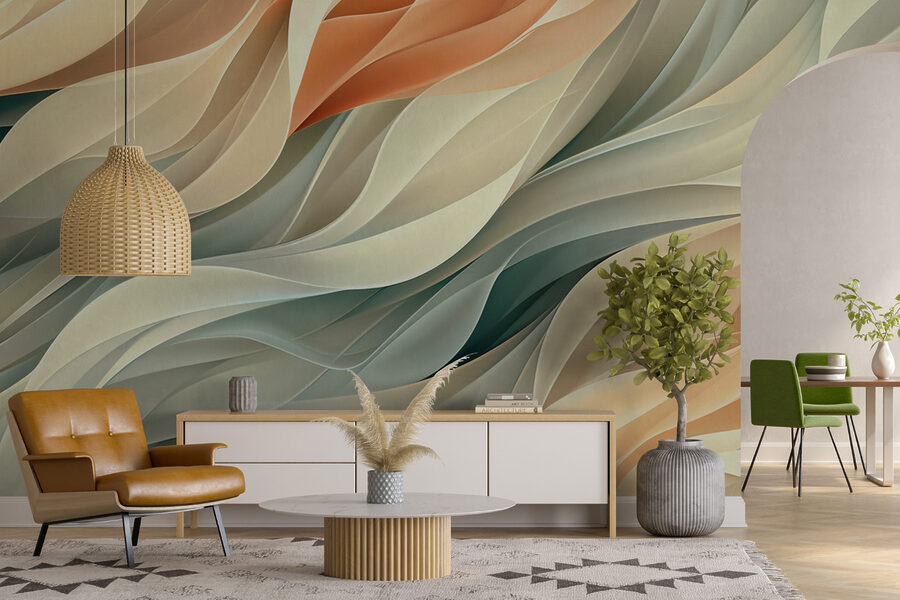 Vous connaissez ce sentiment lorsque vous entrez dans une pièce et qu’elle est tout simplement époustouflante ! C’est le cas de “Papier peint w01335v1”. C’est un tourbillon de pastels froids et de tons chauds, un peu comme si vous regardiez une douce brise jouer avec les vagues. Ce n’est pas seulement une peinture murale… c’est une expérience. Imaginez-la dans un salon où se déroulent vos meilleures conversations, ou dans une chambre à coucher où vos rêves s’envolent. Le motif géométrique en 3D ajoute une touche d’élégance moderne, mais il est aussi douillet et invitant, comme un câlin pour vos murs !