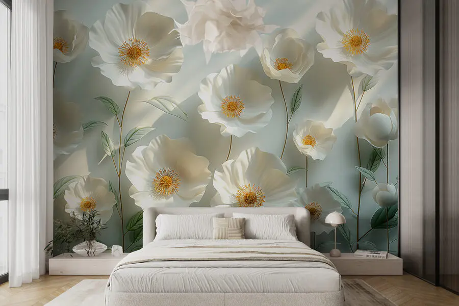 Transformez n’importe quel mur en jardin avec cette superbe peinture murale représentant un joli groupe de fleurs blanches poussant joyeusement au milieu de feuilles vertes. Imaginez que vous vous réveillez chaque jour et que vous avez l’impression de vous promener dans une prairie ensoleillée. Ces fleurs ajoutent une ambiance fraîche et apaisante, parfaite pour les matinées douillettes ou les soirées fraîches. Que ce soit dans un salon, une chambre à coucher ou même un espace créatif, elles feront dire à tout le monde : “Wow, regardez-les !”. De plus, qui n’aime pas les fleurs qui n’ont pas besoin d’être arrosées ? Votre mur vous remerciera pendant que vous vous délecterez de leur beauté !