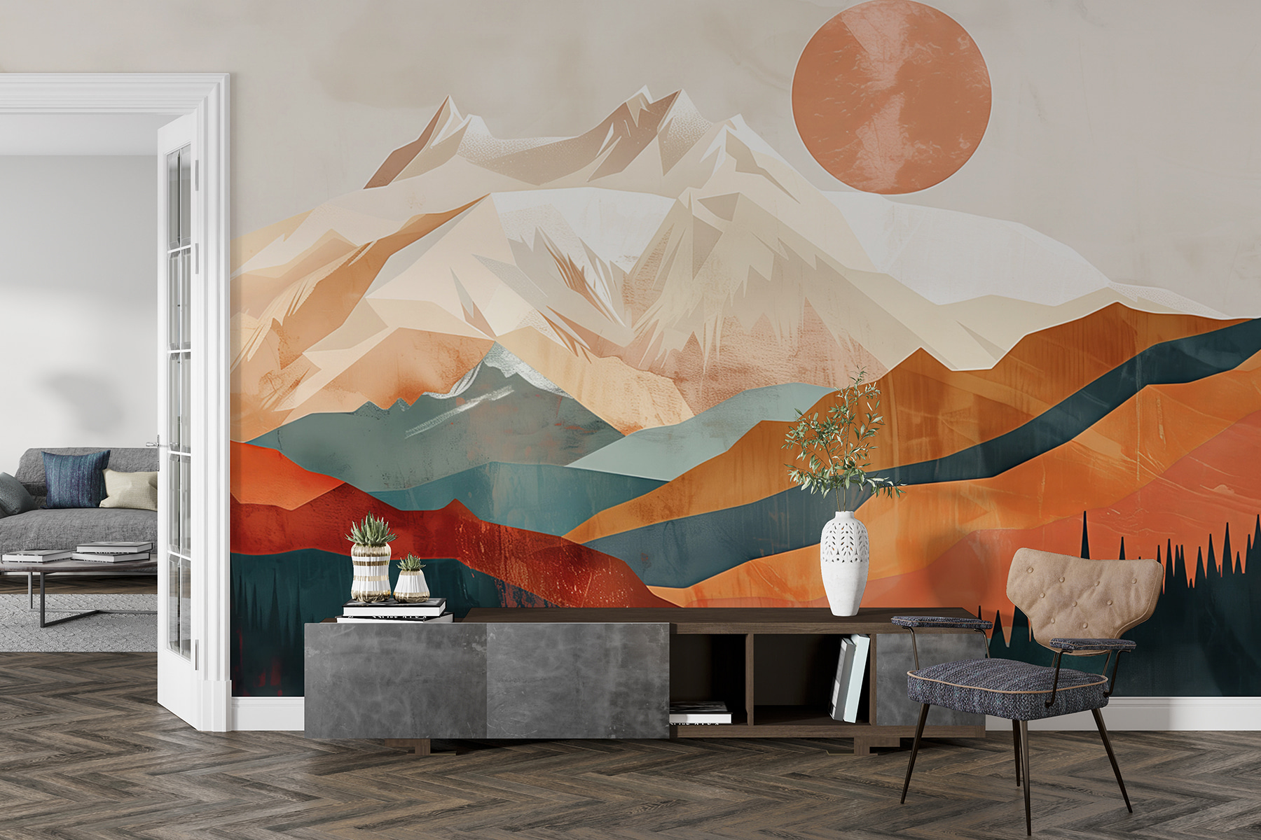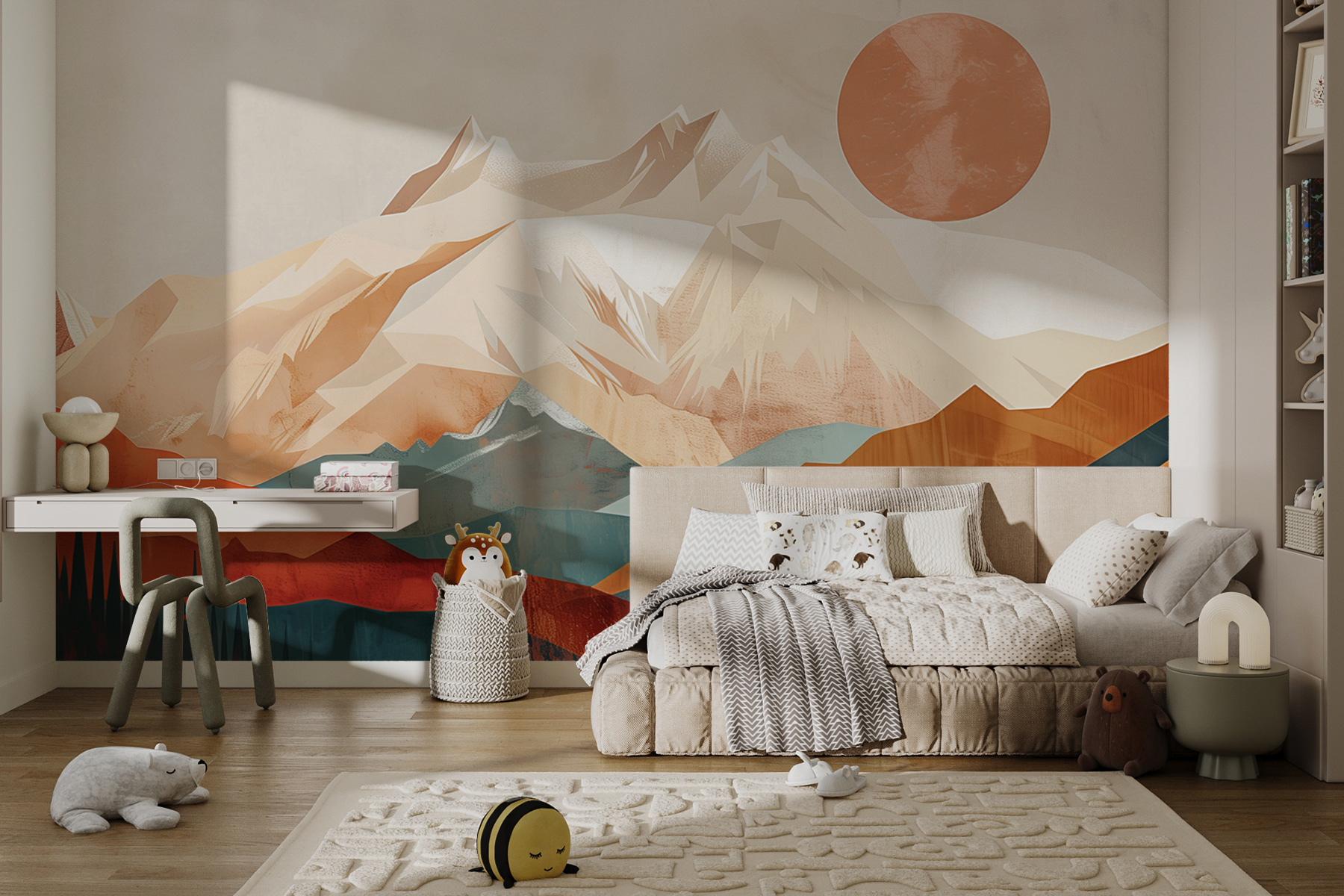 Avez-vous déjà souhaité vous réveiller avec une vue sur les montagnes tous les jours ? Eh bien, “Papier peint w01358” a tout ce qu’il vous faut ! C’est comme entrer dans un rêve abstrait – des sommets audacieux qui semblent toucher le ciel, un soleil chaud qui plane dans un ciel brumeux et serein… Le simple fait de la regarder peut vous donner l’impression d’être en mini-vacances. Parfait pour tous ceux qui aiment la nature mais veulent une ambiance contemporaine et artistique. Imaginez ce tableau dans votre salon ou même dans votre bureau – il apporte l’extérieur à l’intérieur d’une manière si élégante et apaisante. Parfait pour créer un espace inspirant avec vue… sans avoir à voyager !