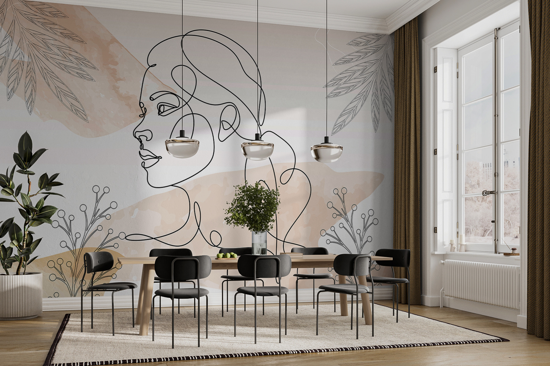 Imaginez que vous entrez dans une pièce et que vous êtes accueilli par la présence enchanteresse d’un visage de femme, artistiquement représenté dans une superbe peinture murale. Cette œuvre, qui associe des lignes simples à des couleurs douces et terreuses, ajoute une touche de personnalité à n’importe quel espace. Elle murmure des histoires, invitant à la conversation et à la rêverie. Imaginez des amis se réunissant, les yeux attirés par la peinture murale, chacun interprétant la beauté à travers sa propre lentille. Il ne s’agit pas seulement d’un décor, mais d’une ambiance qui suscite l’inspiration et la chaleur. Parfaite pour un coin douillet ou un espace de vie animé, cette peinture murale transforme sans effort les murs en toiles d’émotion et d’expression.