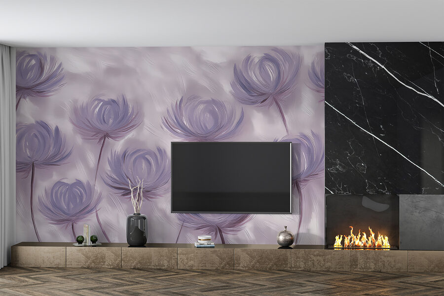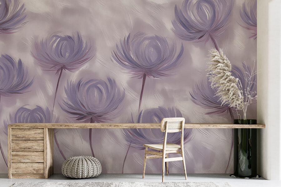 Jetez un coup d’œil à cette superbe peinture murale, bien nommée “Murale w01375”. C’est comme un rêve éveillé qui prend vie, n’est-ce pas ? Parfait pour tous ceux qui aiment les décors uniques avec une touche de nature et une touche de magie aquarelle. Imaginez : des fleurs douces et fantaisistes dans des tons violets délicats, se balançant presque comme si elles se chuchotaient des secrets l’une à l’autre.