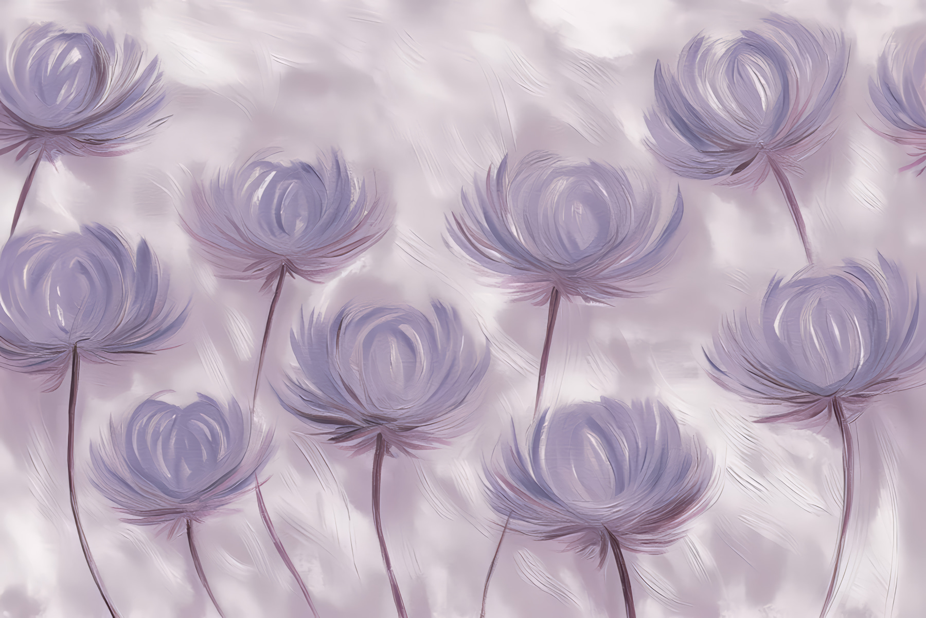 Jetez un coup d’œil à cette superbe peinture murale, bien nommée “Murale w01375”. C’est comme un rêve éveillé qui prend vie, n’est-ce pas ? Parfait pour tous ceux qui aiment les décors uniques avec une touche de nature et une touche de magie aquarelle. Imaginez : des fleurs douces et fantaisistes dans des tons violets délicats, se balançant presque comme si elles se chuchotaient des secrets l’une à l’autre.