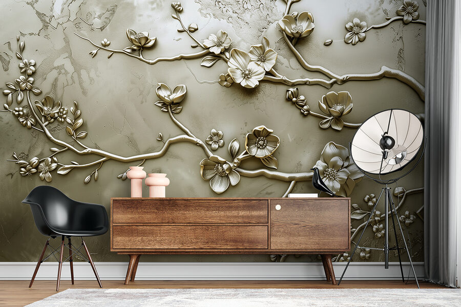 Voici votre nouvelle peinture murale préférée : “Papier peint w01432v1”. Il a un peu de tout – chic contemporain, flair géométrique et ces fleurs en 3D qui vous sautent pratiquement aux yeux ! Imaginez que vous vous installez dans votre salon et que vous contemplez cette superbe œuvre… On se croirait dans une galerie d’art huppée, mais sans les panneaux “Ne pas toucher”.
