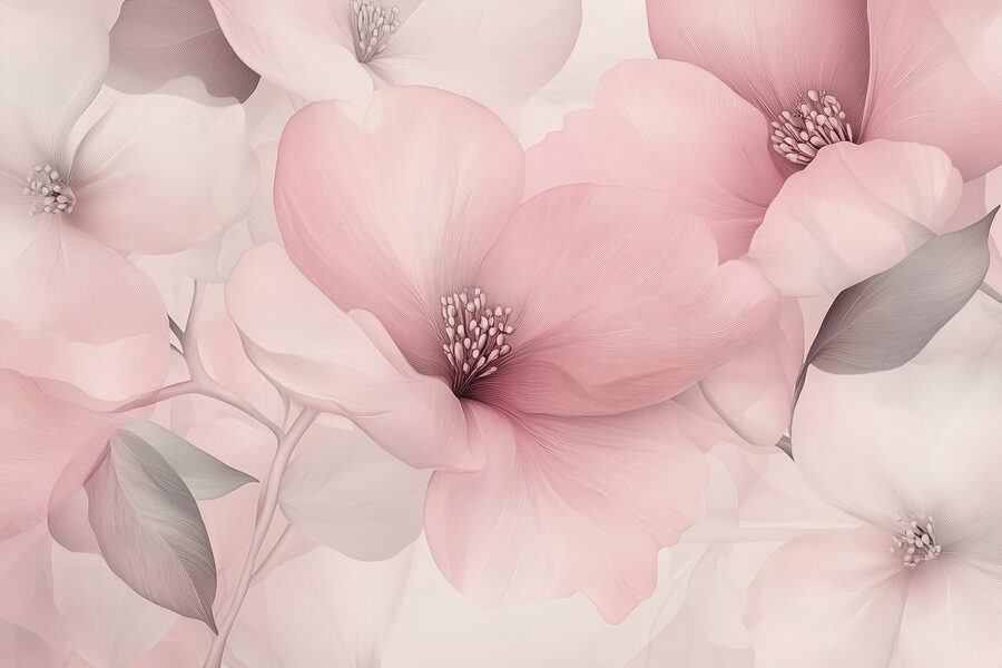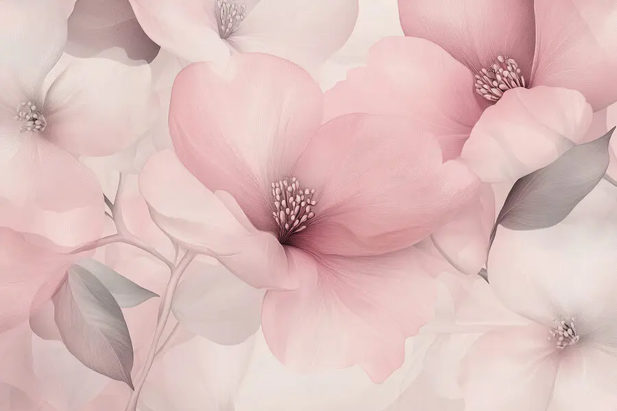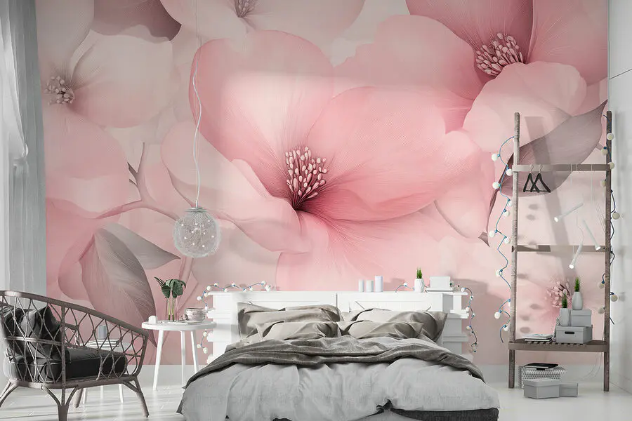 Imaginez un peu : vous vous réveillez, les yeux vides, et soudain, bam ! vous êtes accueilli par des fleurs géantes et douces qui s’épanouissent sur votre mur. Cela ne rendrait-il pas les lundis matin un peu plus supportables ? Mélangeant des nuances de rose blush et de blanc apaisant, cette peinture murale est synonyme de sérénité – c’est comme si vous faisiez entrer un spectacle de fleurs apaisantes dans votre salon.