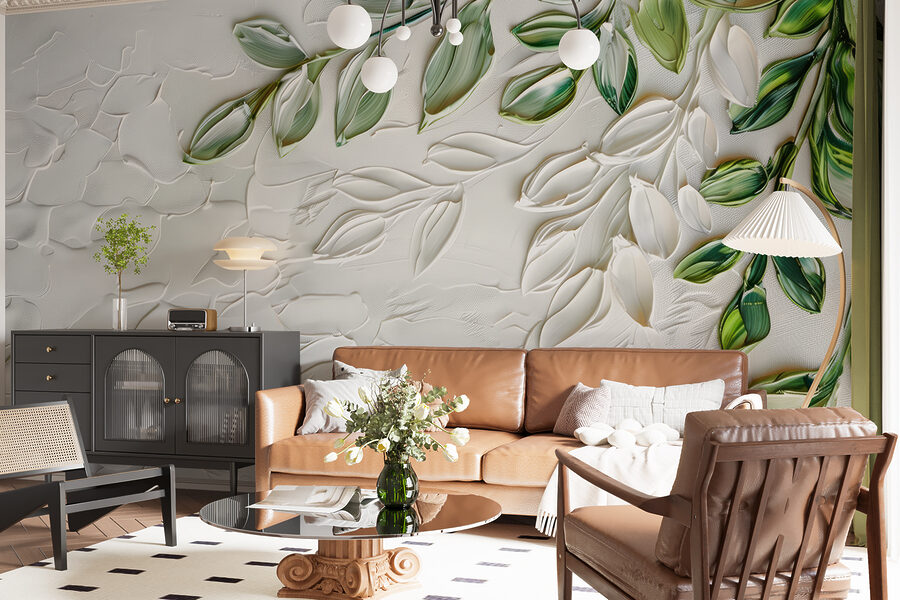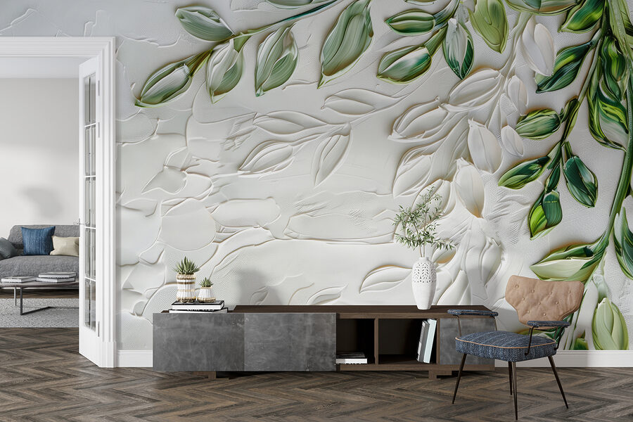 Jetez un coup d’œil à cette peinture murale captivante (w01470) ! C’est comme si vous pénétriez dans un jardin serein à chaque fois que vous entrez dans la pièce. La peinture murale présente de délicates feuilles vertes avec un effet 3D tellement cool qu’on a presque l’impression de pouvoir les toucher. Parfait pour tous ceux qui aiment les décorations inspirées de la nature avec une touche d’originalité.