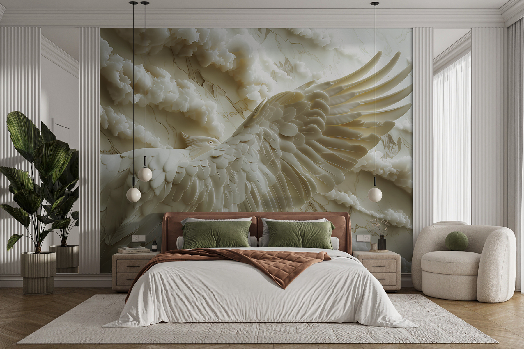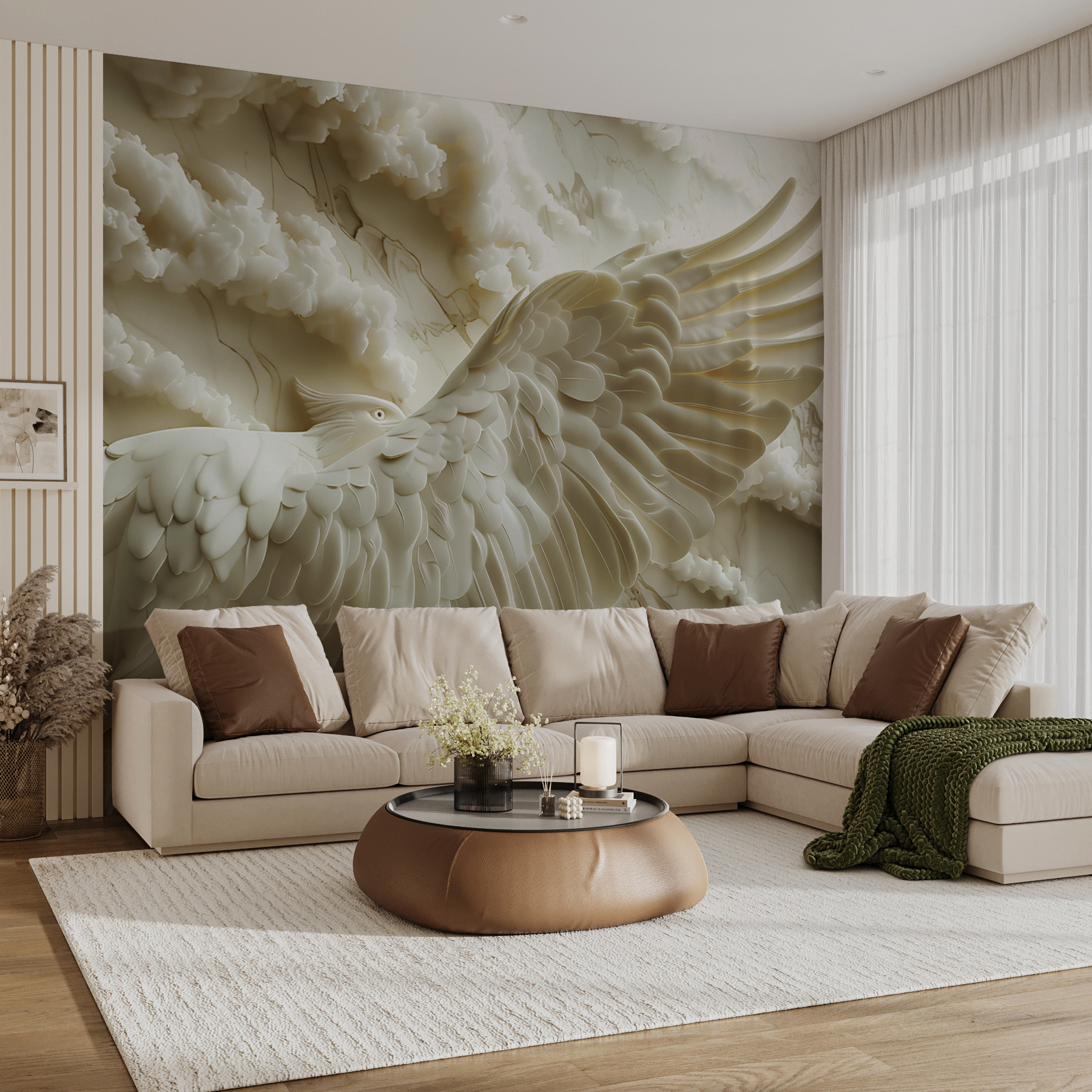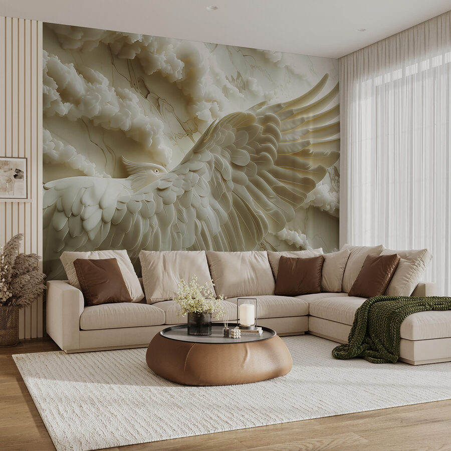 Transformez n’importe quelle pièce en un lieu d’évasion serein avec les “Muraux Oiseau blanc aux ailes déployées”. Cette œuvre étonnante capture la grâce d’un oiseau en plein vol, entouré de nuages doux et fluides. Imaginez que vous entrez dans votre espace et que vous ressentez instantanément un sentiment de calme, comme si vous contempliez un ciel paisible.