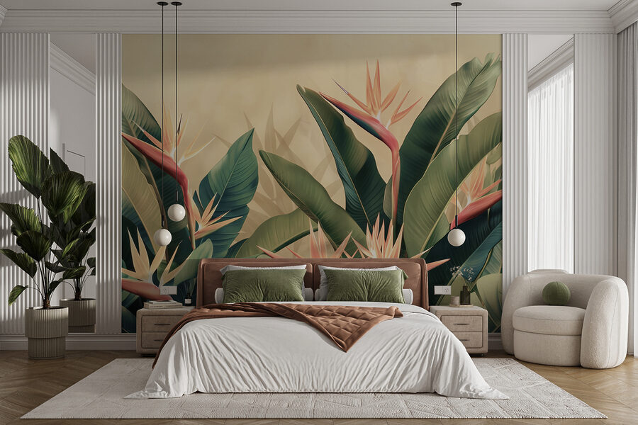 Imaginez que vous entrez dans votre salon et que vous avez instantanément l’impression d’être tombé dans un paradis tropical – pas besoin de billets d’avion ! Avec les “Papier peint w01484v1”, ces feuilles vertes luxuriantes et ces fleurs d’oiseaux de paradis éclatantes jaillissent pratiquement du mur. Ce n’est pas seulement un décor, c’est une évasion. Parfait pour tous ceux qui rêvent d’une escapade sur une île alors qu’ils sont submergés de courriels. Les feuilles sont tellement détaillées qu’on croirait entendre le bruissement de la brise… et qui sait, vous aurez peut-être envie d’une piña colada. C’est comme si vous apportiez une tranche de la beauté de la nature à l’intérieur, sans les insectes ! L’arrière-plan de cette peinture murale a une profondeur qui crée un effet presque 3D, donnant à votre espace une bouffée de vie rafraîchissante. Croyez-moi, vos matins seront plus lumineux et vos soirées plus détendues.