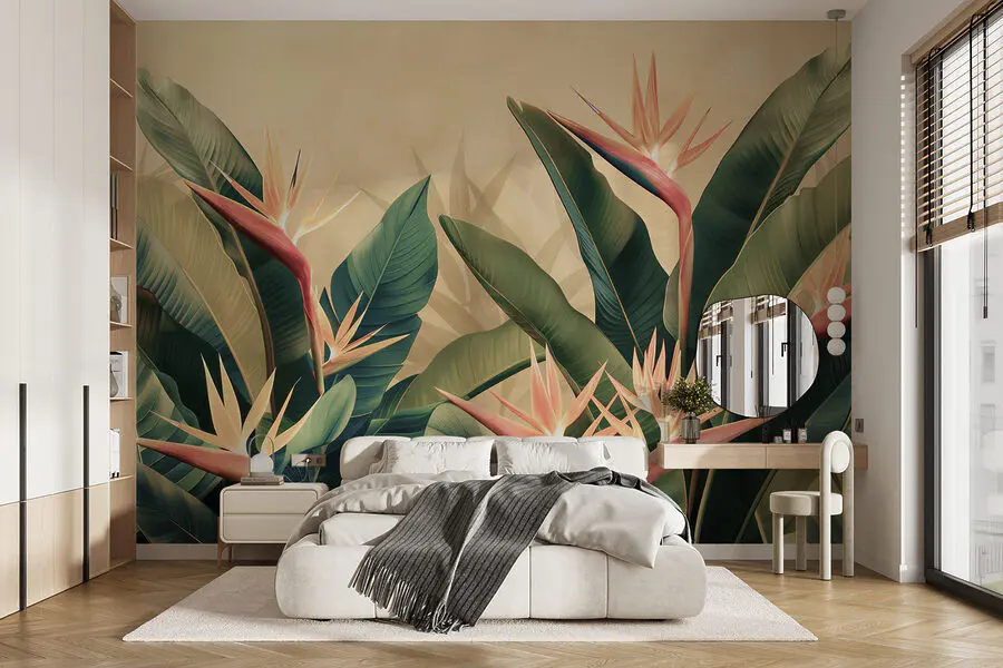 Imaginez que vous entrez dans votre salon et que vous avez instantanément l’impression d’être tombé dans un paradis tropical – pas besoin de billets d’avion ! Avec les “Papier peint w01484v1”, ces feuilles vertes luxuriantes et ces fleurs d’oiseaux de paradis éclatantes jaillissent pratiquement du mur. Ce n’est pas seulement un décor, c’est une évasion. Parfait pour tous ceux qui rêvent d’une escapade sur une île alors qu’ils sont submergés de courriels. Les feuilles sont tellement détaillées qu’on croirait entendre le bruissement de la brise… et qui sait, vous aurez peut-être envie d’une piña colada. C’est comme si vous apportiez une tranche de la beauté de la nature à l’intérieur, sans les insectes ! L’arrière-plan de cette peinture murale a une profondeur qui crée un effet presque 3D, donnant à votre espace une bouffée de vie rafraîchissante. Croyez-moi, vos matins seront plus lumineux et vos soirées plus détendues.