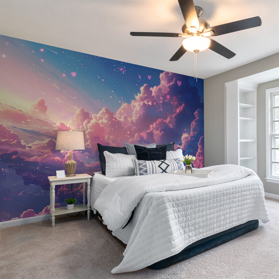 Imaginez que vous levez les yeux et que vous voyez un ciel rempli de nuages de rêve, teintés de rose, qui semblent tout droit sortis d’un conte de fées. Cette peinture murale, “Papier peint w01487”, est cette scène magique capturée pour votre mur. C’est comme si vous faisiez entrer un morceau de paradis de barbe à papa dans votre maison. Parfait pour ceux qui aiment une touche de fantaisie et une touche de sérénité diurne. Les bleus et les roses doux se fondent les uns dans les autres, donnant à chaque pièce un air à la fois confortable et rafraîchissant. Les enfants adoreront les touches en forme de cœur, et il pourrait bien être le point de départ d’une conversation lors de votre prochaine réunion. Ce n’est pas seulement une peinture murale, c’est un petit morceau de bonheur sur votre mur.