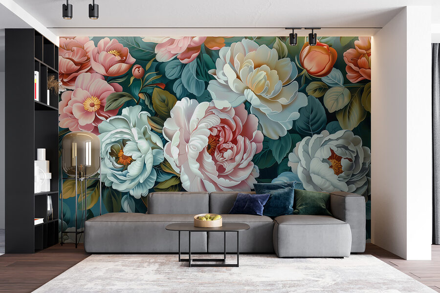 Une telle peinture murale transforme n’importe quel espace. Elle pourrait être votre échappatoire personnelle, transformant une pièce morne en un jardin vivant. Imaginez votre café du matin avec ces fleurs en toile de fond – il y a de quoi égayer n’importe quelle journée. Le mélange de couleurs riches et profondes et de détails complexes donne de l’éclat à ce tableau.