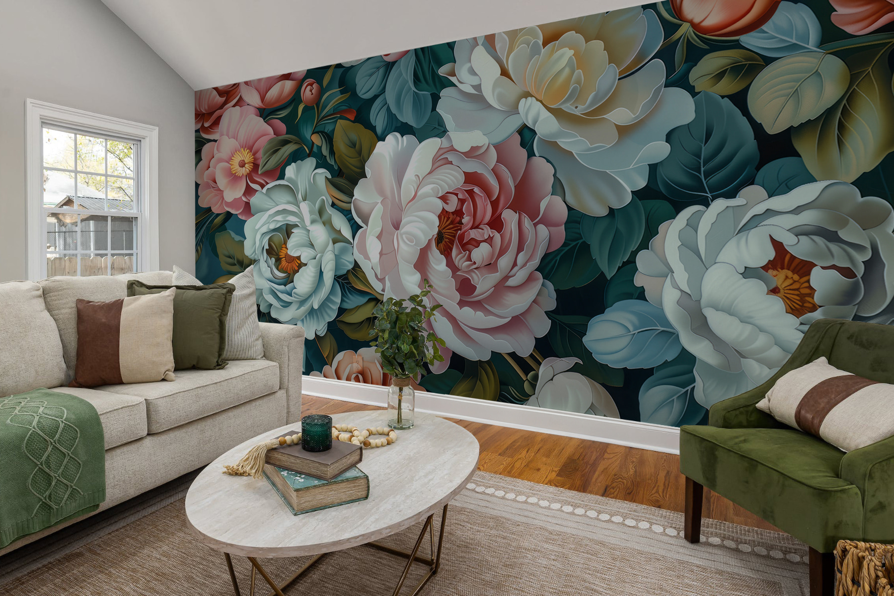 Une telle peinture murale transforme n’importe quel espace. Elle pourrait être votre échappatoire personnelle, transformant une pièce morne en un jardin vivant. Imaginez votre café du matin avec ces fleurs en toile de fond – il y a de quoi égayer n’importe quelle journée. Le mélange de couleurs riches et profondes et de détails complexes donne de l’éclat à ce tableau.