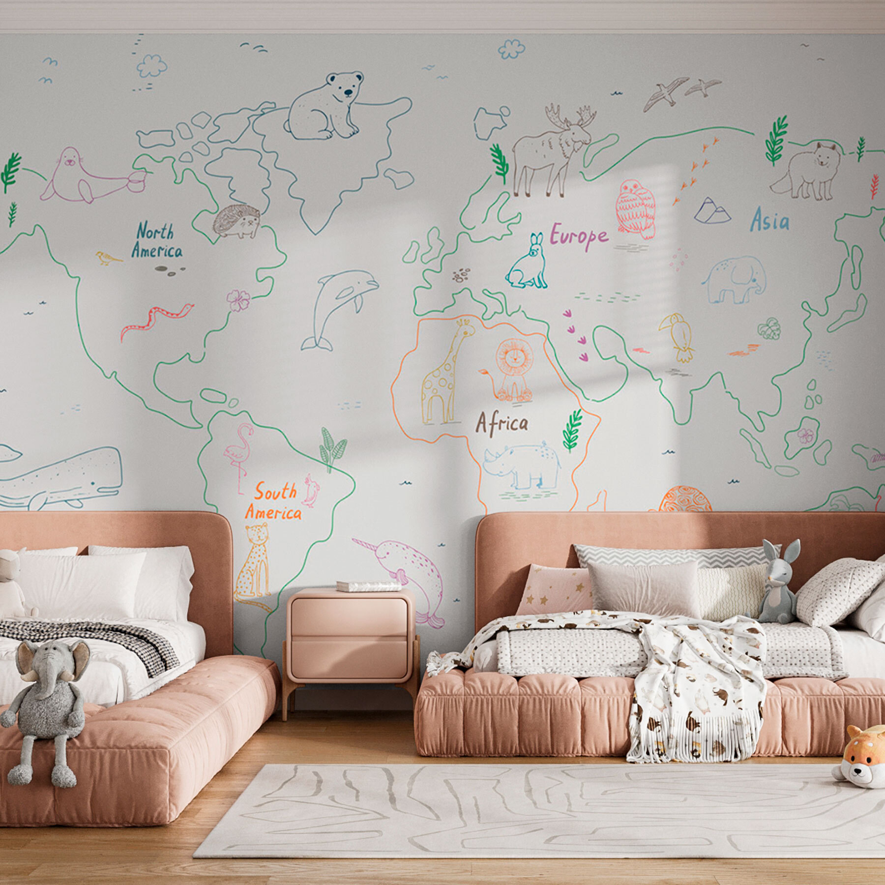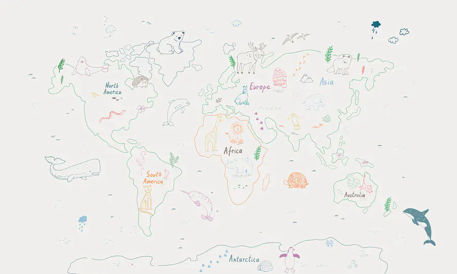Imaginez que vous vous réveillez chaque matin avec une aventure grâce au Papier peint w01502v1 ! Il s’agit d’une délicieuse touche de fantaisie, mêlant des cartes de la Terre à de charmants gribouillis d’animaux. Parfait pour une chambre d’enfant ou pour les jeunes de cœur. Chaque continent possède son propre équipage créatif : des lions qui se prélassent en Afrique, des pingouins qui se prélassent en Antarctique, et bien d’autres encore. Les amis et la famille adoreront tracer ces illustrations amusantes avec leurs doigts, suscitant ainsi la curiosité pour notre monde. C’est un mélange d’éducation et d’art, un peu comme une chasse au trésor mondiale sur votre mur !