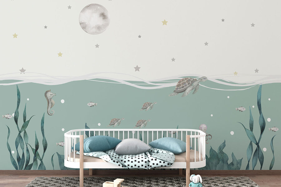 Imaginez que vous plongez dans un monde sous-marin serein chaque fois que vous entrez dans la pièce. Cette peinture murale “Algues et hippocampes” capture la douce danse des créatures marines sous un ciel étoilé. C’est comme si vos murs avaient fait un délicieux plongeon dans l’océan. Parfait pour tout espace qui a besoin d’une touche de fantaisie ou d’une ambiance apaisante. De plus, qui n’a pas envie de regarder de minuscules tortues passer en sirotant son café du matin ? Allez-y, ajoutez une touche de bord de mer à votre décor et laissez libre cours à votre imagination !