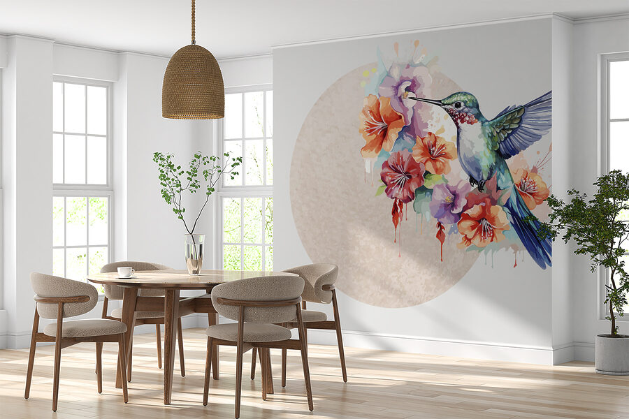 Imaginez que vous pénétrez dans un jardin où le temps s’arrête, avec le doux battement d’ailes et le parfum sucré des fleurs qui remplissent l’air. Cette peinture murale “Colibri volant au-dessus des fleurs” est comme la capture d’un moment de joie fugace, peint en aquarelle de rêve. Ce n’est pas seulement une peinture murale, c’est une petite aventure sur votre mur ! Parfait pour ceux qui aiment la beauté de la nature et veulent une touche de couleur pour égayer leur espace. Chaque regard invite à un sourire, à une bouffée d’air frais et peut-être même à une ou deux rêveries.