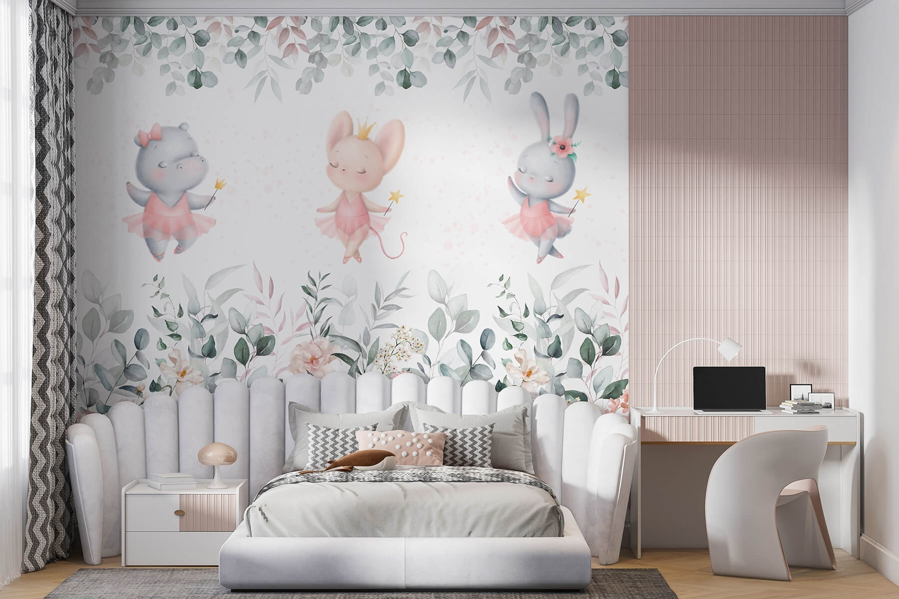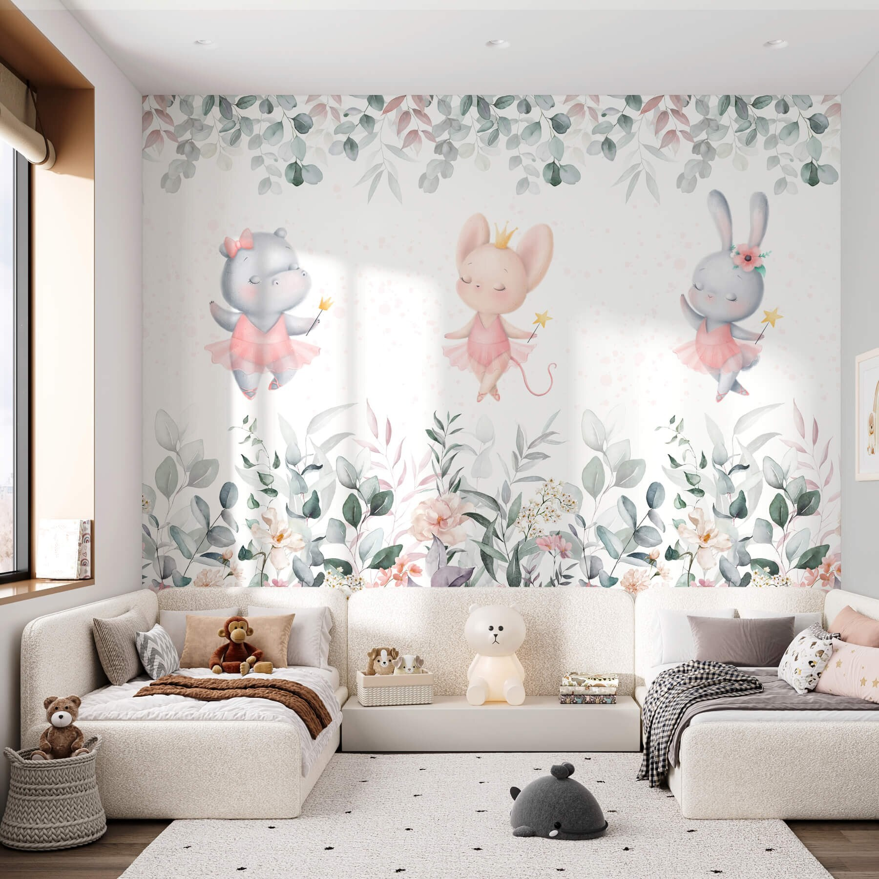 Transformez l’espace de votre enfant en un pays des merveilles fantaisiste grâce à cette ravissante peinture murale représentant d’adorables animaux en jupes tutu roses ! Imaginez un joyeux hippopotame, une charmante souris et un adorable lapin, tous dansant sous une pluie de fleurs. C’est comme un joyeux ballet sans avoir besoin de chaussures. Cette peinture murale n’est pas seulement un décor ; elle stimule l’imagination et les rires, ce qui la rend parfaite pour les salles de jeux ou les crèches. Imaginez un enfant virevoltant, inspiré par la beauté des murs, et se sentant comme une superstar. Qui n’aurait pas envie de s’amuser avec lui ? C’est un doux rappel de la magie de l’enfance, saupoudré d’une touche de charme floral. Parfait pour ceux qui cherchent à donner le sourire à n’importe quelle pièce !