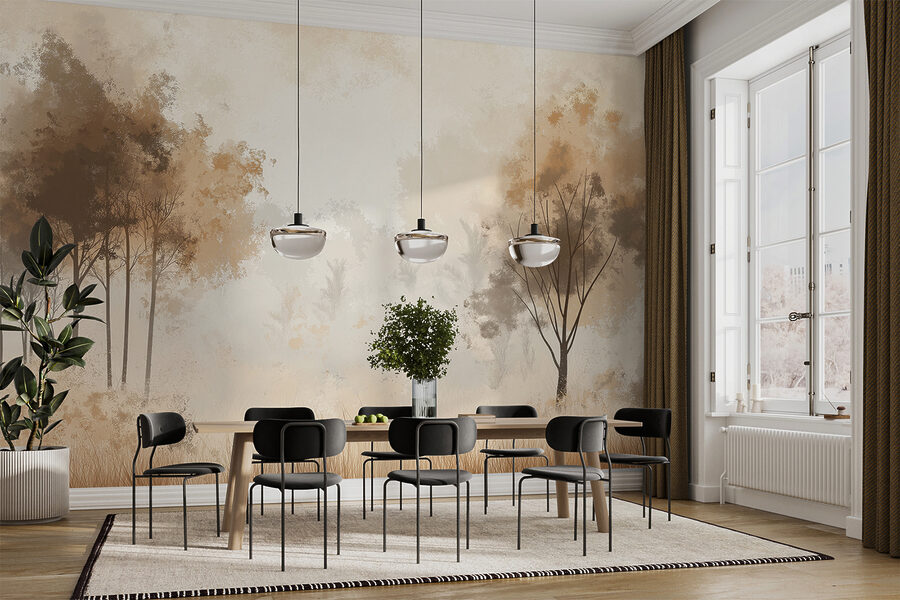 Voici quelque chose de spécial : une peinture murale représentant une forêt brumeuse – des arbres qui s’étirent, de la brume qui s’enroule autour d’eux, de l’herbe qui se balance doucement. Parfait pour transformer n’importe quelle pièce en un lieu de retraite boisé et chuchotant. C’est comme entrer dans un conte de fées, les animaux parlants en moins (malheureusement). Le matin, votre café à la main, vous pourriez presque sentir la rosée. Amoureux de la nature, votre mur vierge vient de trouver sa vocation. Imaginez vos invités entrer, bouche bée, en se demandant “Où est Narnia ?”. Il s’agit d’une atmosphère, pas seulement d’une peinture murale.
