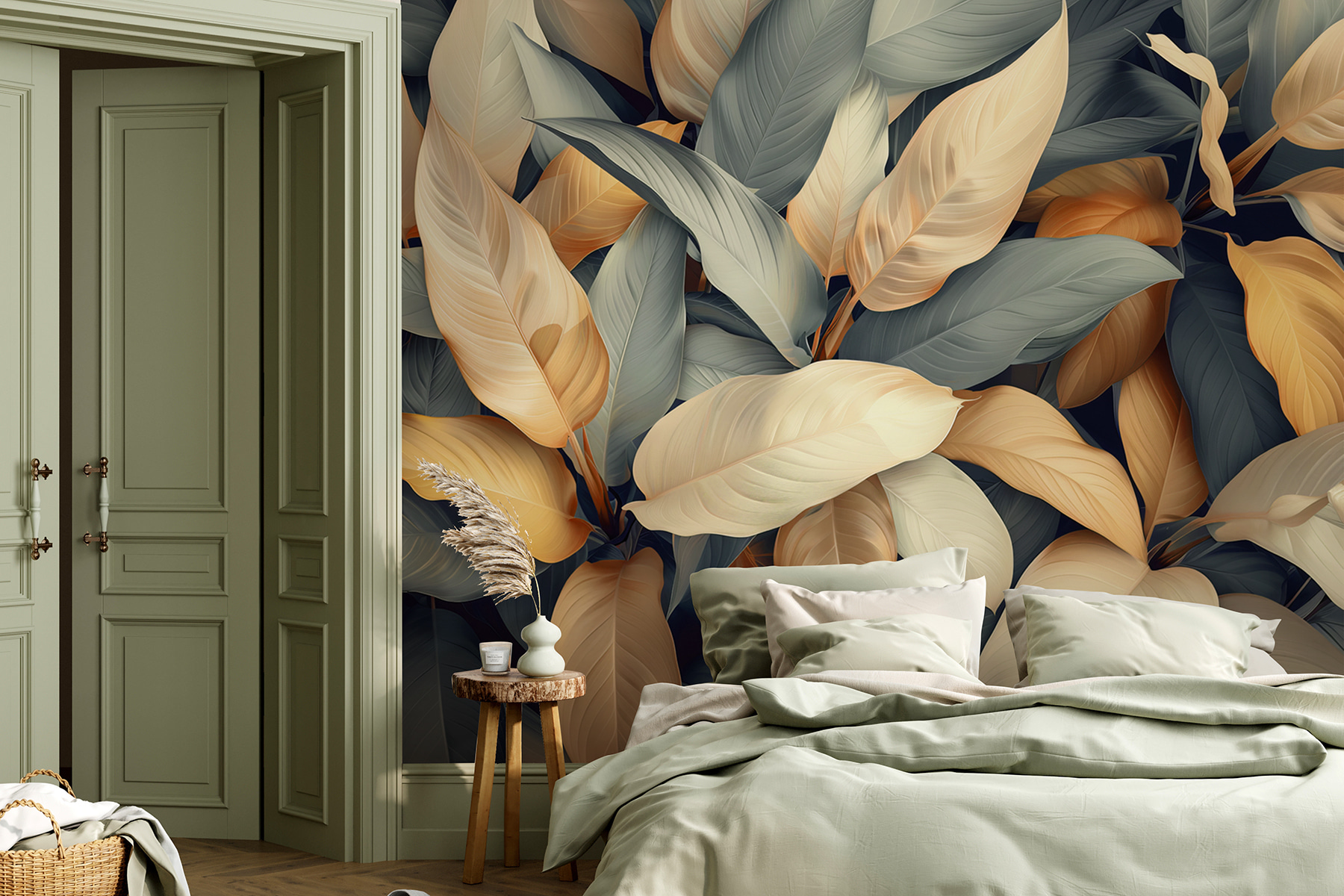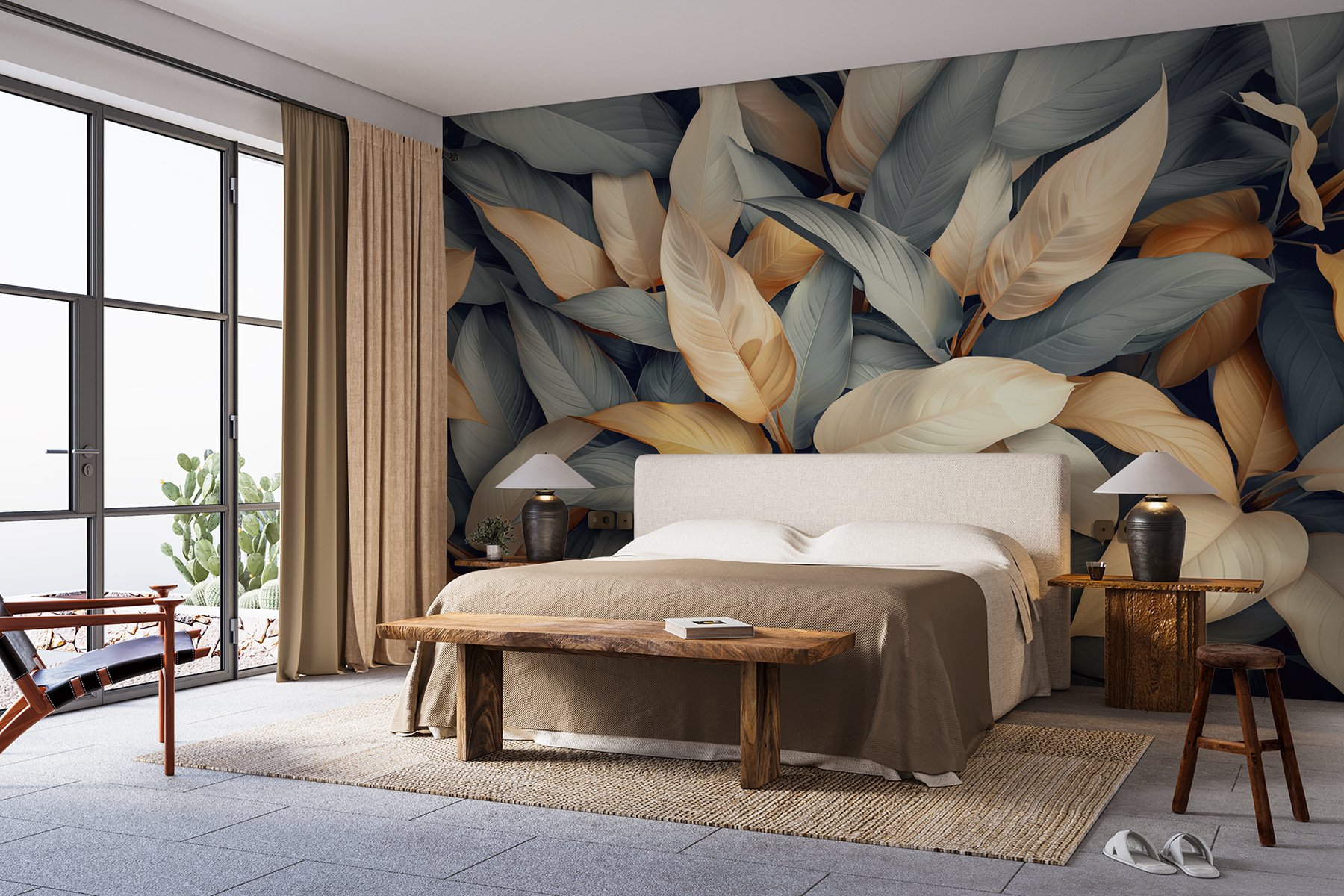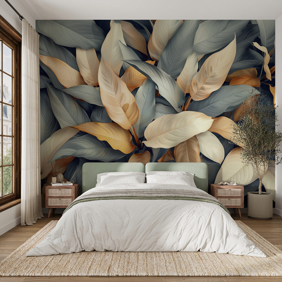 Transformez votre espace avec cette superbe peinture murale de feuilles colorées. Imaginez que vous entrez dans une pièce où la nature prend vie, vous enveloppant de chaleur et de tranquillité. À chaque regard, ces douces nuances de crème et d’or dansant sur des tons froids créent une atmosphère à la fois apaisante et vibrante. C’est comme si vous faisiez entrer l’extérieur sans risquer d’arroser une seule plante ! Idéale pour un coin lecture confortable ou un bureau animé, cette peinture murale peut donner à chaque jour l’impression d’une promenade rafraîchissante dans un jardin luxuriant. Le mélange des couleurs remonte subtilement le moral et stimule l’inspiration, ce qui en fait un choix idéal pour tous ceux qui souhaitent créer une retraite accueillante. Ne soyez pas surpris si vous vous retrouvez à rêvasser au milieu des feuilles – c’est l’une de ces peintures murales qui vous attire !