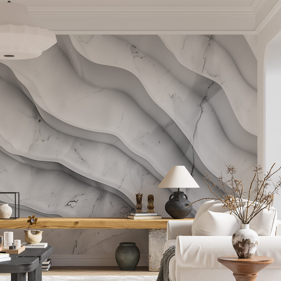 Imaginez que vous entriez dans une pièce et que vous soyez accueilli par le flux apaisant d’une surface de marbre blanc aux lignes ondulées. C’est comme si vos murs avaient droit à une journée de spa ! Cette peinture murale a cette ambiance chic et sophistiquée, mais avec une touche d’originalité : ces lignes ondulées ajoutent juste ce qu’il faut d’énergie ludique. Elle est parfaite pour un coin douillet ou un espace de bureau élégant. Imaginez-vous en train de siroter un café, vous sentant à la fois chic et étonnamment détendu. C’est votre espace, rehaussé d’un peu de magie de marbre, qui transforme les jours ordinaires en jours extraordinaires. Qui aurait cru qu’un mur pouvait faire tant de choses ?