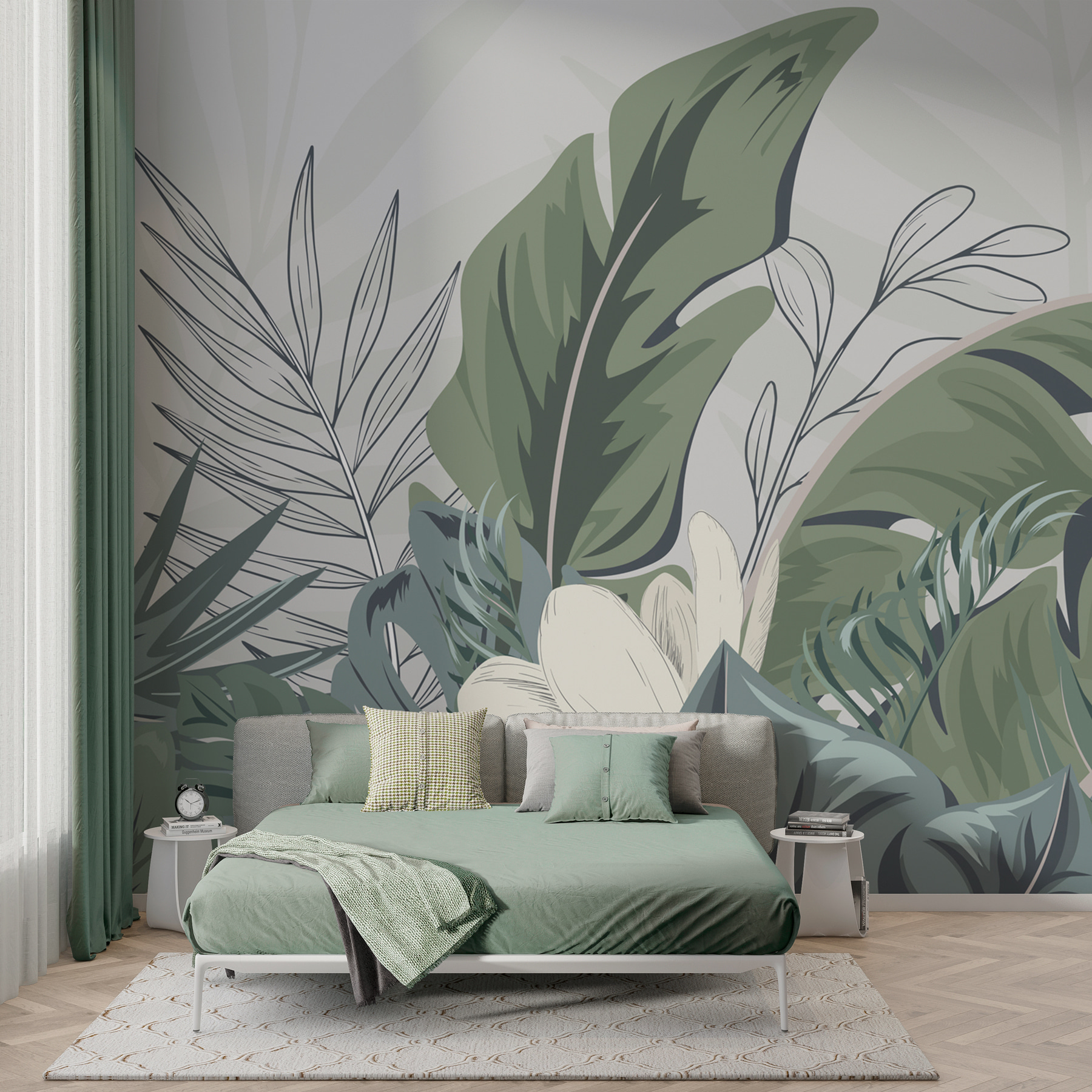 Imaginez que vous entrez dans une pièce qui vous donne l’impression de respirer l’air frais – c’est exactement ce qu’apporte cette peinture murale Tropical Leaves. C’est comme si la nature avait décidé de s’installer dans votre espace de vie ! Avec ses teintes douces et ses feuilles luxuriantes, il évoque le calme mais sait aussi s’imposer. Parfait pour ceux qui veulent une part des tropiques sans l’humidité. Que vous souhaitiez donner un coup de jeune à une pièce terne ou faire en sorte qu’un bureau se sente moins, eh bien, un bureau, cette peinture murale fait l’affaire. C’est comme une mini-vacance à chaque fois que vous y jetez un coup d’œil. Qui n’aimerait pas cela ?