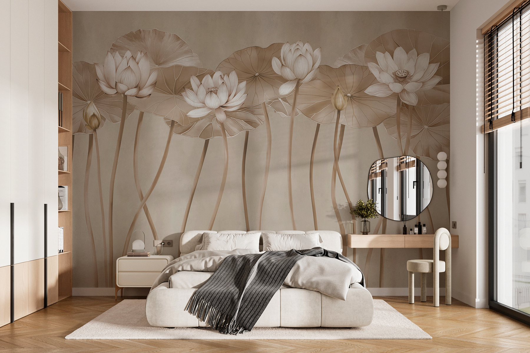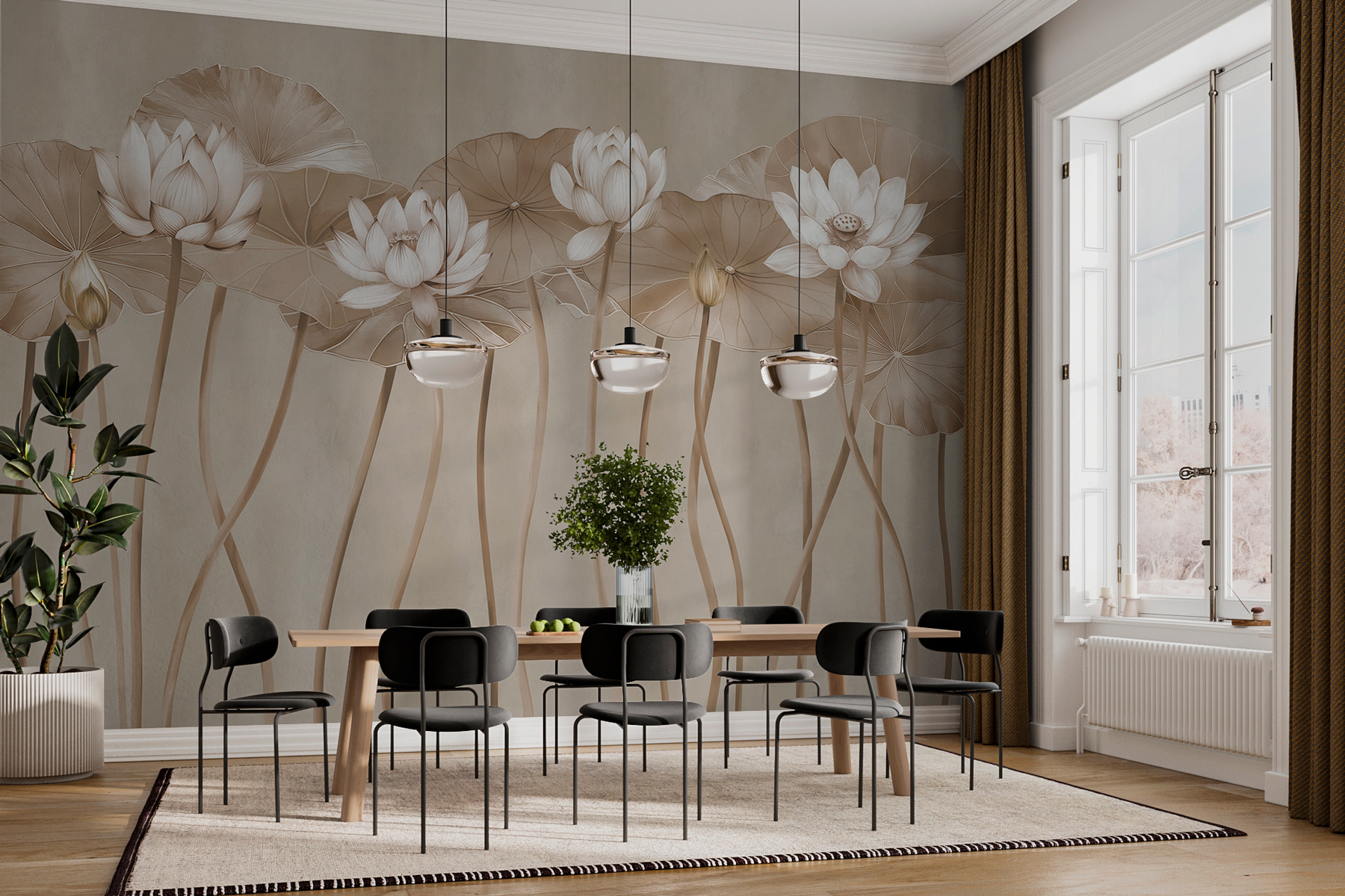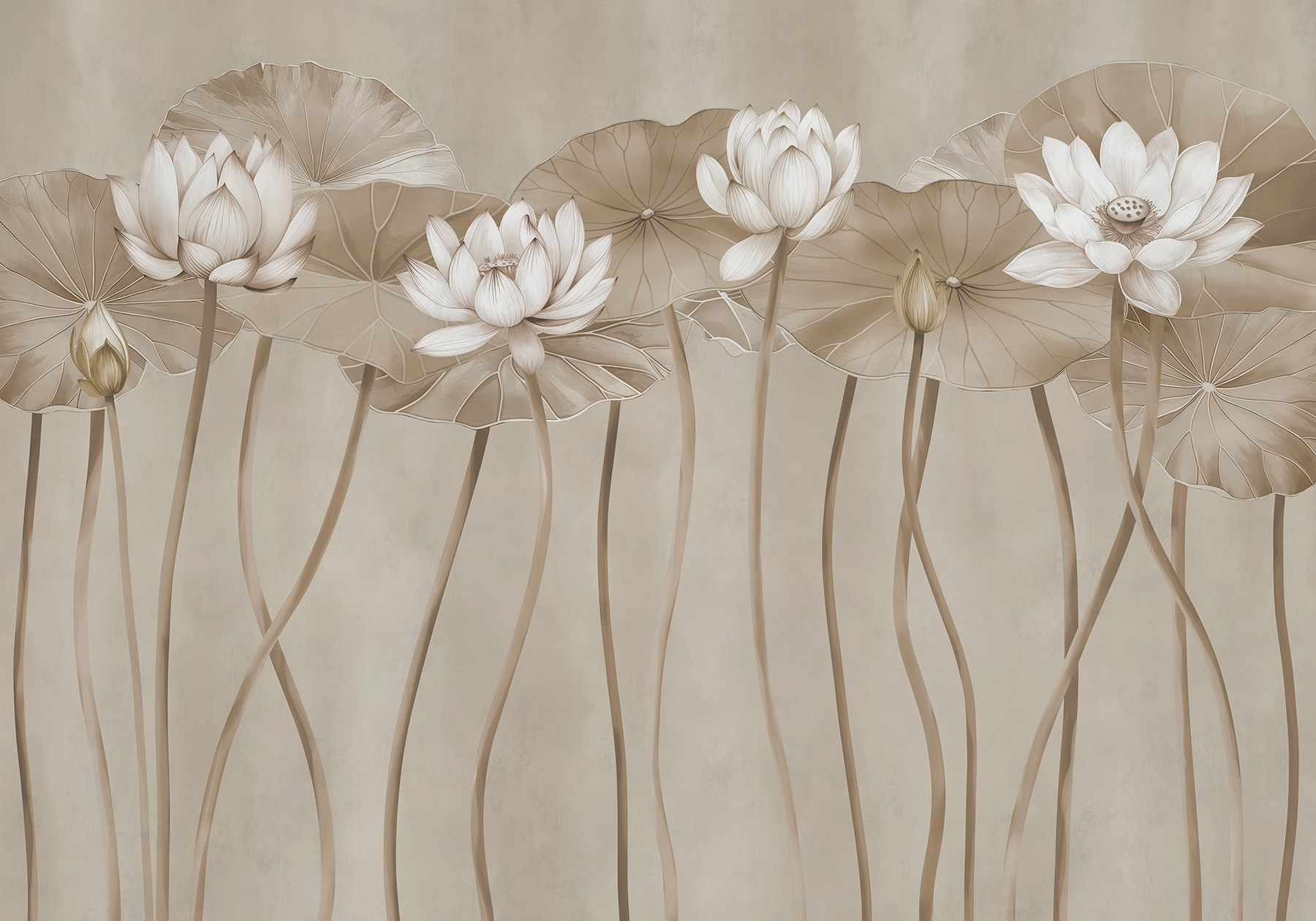 Transformez un mur ordinaire en une échappée sereine avec la peinture murale Ethereal Lotus dans des tons monochromes. Imaginez que vous pénétrez dans un jardin tranquille, où de délicates fleurs de lotus se balancent doucement sur leurs hautes tiges. Cet art mural apporte une touche de nature à l’intérieur, créant une ambiance apaisante qui murmure “Respirez, vous êtes chez vous”. Parfait pour tout espace qui a besoin d’un peu de charme, il peut susciter des conversations ou simplement fournir une toile de fond paisible en sirotant le café du matin. C’est comme si vous disposiez d’une mini oasis là où vous en avez besoin. De plus, qui n’aime pas un bon moment de fleurs de lotus ?
