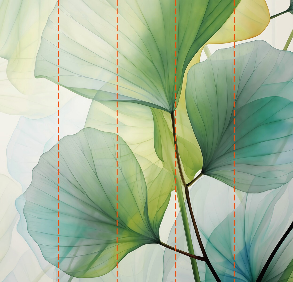 Votre papier peint sera préparé selon les dimensions que vous avez indiquées lors du processus de commande. La toile sera divisée en sections pratiques, chacune d’une largeur maximale de 50 cm.