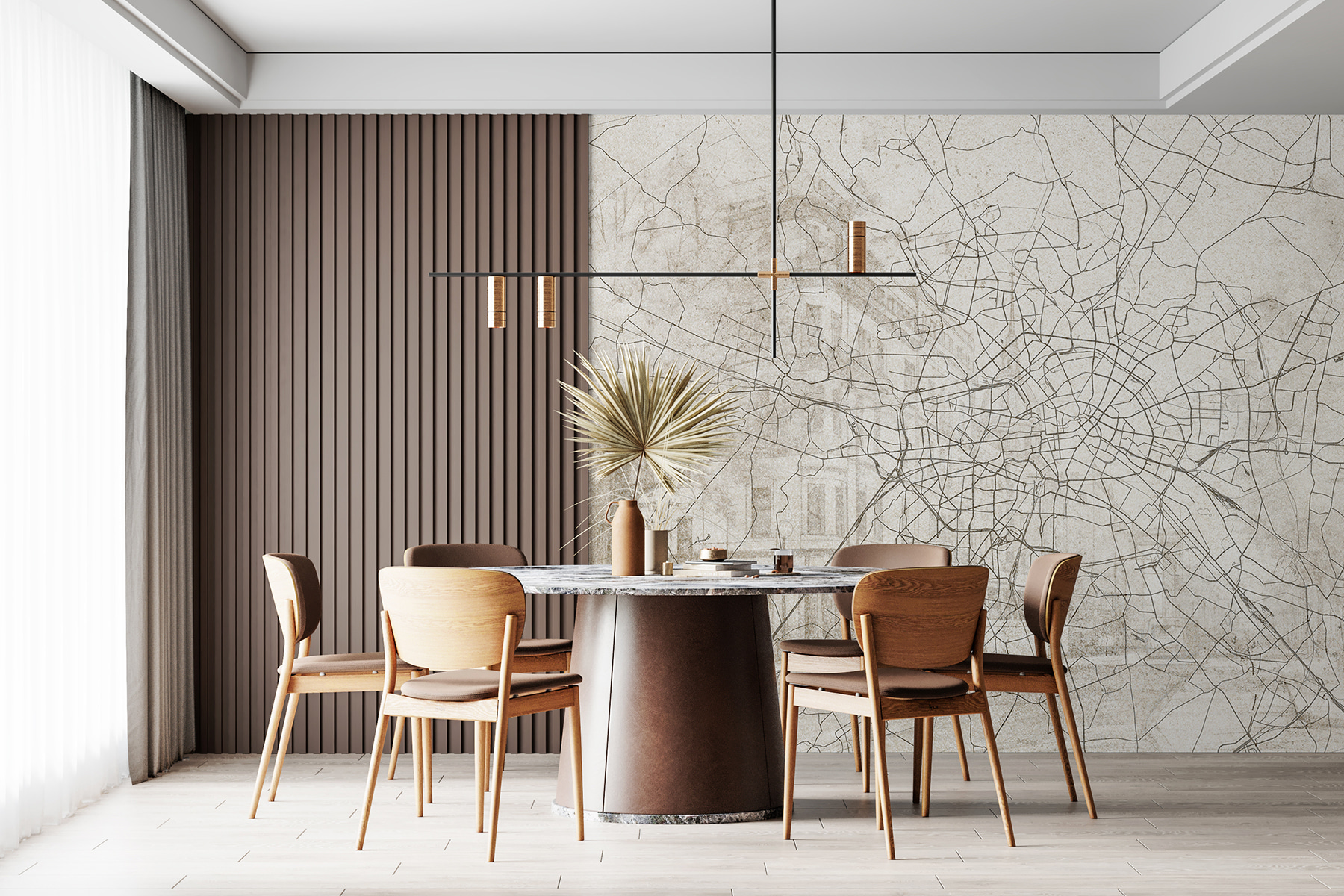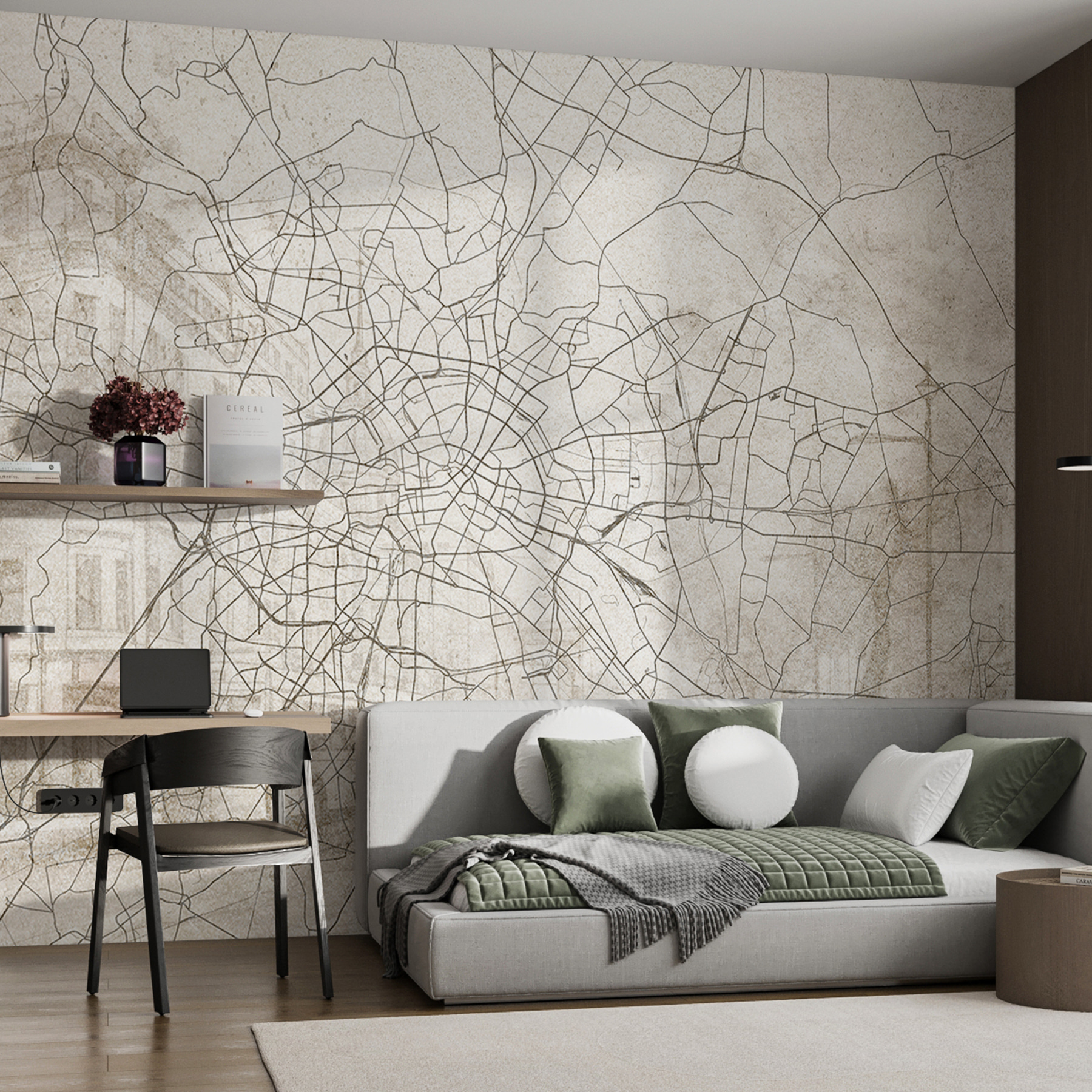 Imaginez que vous entriez dans une pièce et que vous soyez accueilli par une carte murale complexe révélant les secrets d’une ville. C’est comme si vous aviez une vue d’ensemble sans quitter votre canapé. Cette peinture murale raconte des histoires de routes sinueuses et de chemins cachés, comme si vous étiez un explorateur des temps modernes – sans les ampoules. Les tons terreux s’harmonisent parfaitement et il y a une touche de nostalgie mêlée à l’aventure. Parfait pour les rêveurs et les vagabonds qui apprécient une bonne rêverie d’errance. Elle ne manquera pas d’alimenter les conversations : tout le monde aime se “perdre” dans une bonne carte !