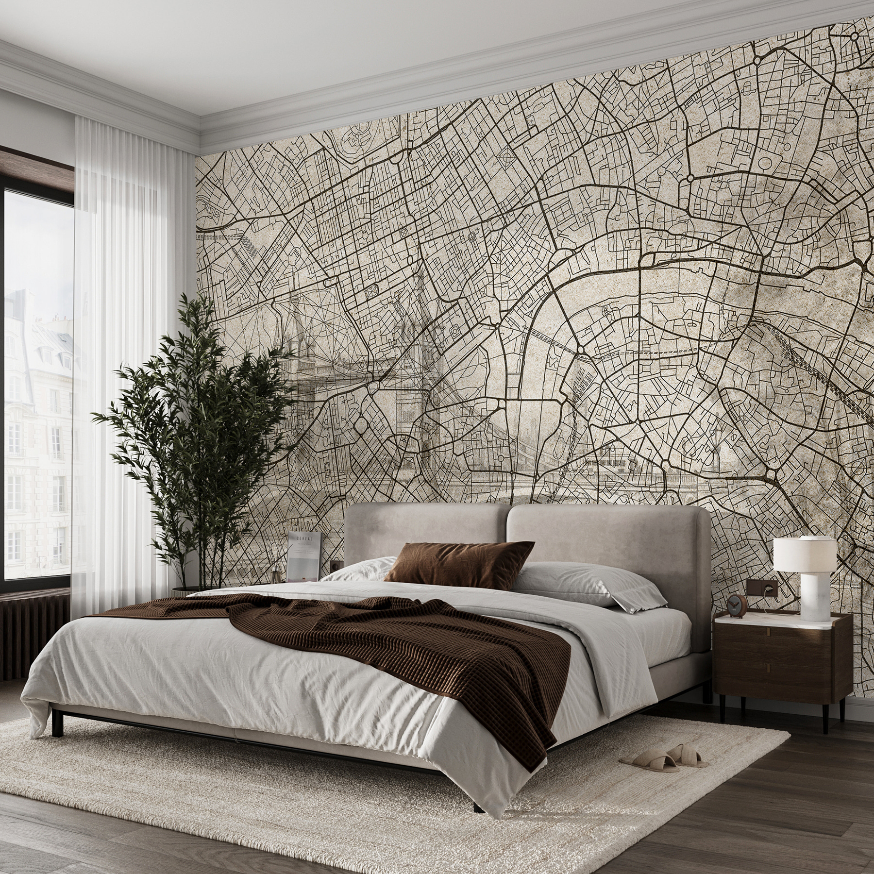 Vous avez déjà rêvé d’un paysage urbain sur votre mur ? Cette peinture murale “Carte d’une ville” est faite pour vous. C’est comme avoir une fenêtre sur le monde sans avoir à payer de billets d’avion. Parfait pour ceux qui aiment se promener, mais aussi pour ceux qui aiment leur canapé. Elle a un charme vintage, comme une vieille carte tirée d’un film de pirates, et donne à votre espace une touche d’aventure. Imaginez-vous en train de siroter un café, de tracer des itinéraires avec vos yeux et de planifier des escapades de rêve. Qui aurait cru qu’un mur pouvait inspirer tout un voyage ?