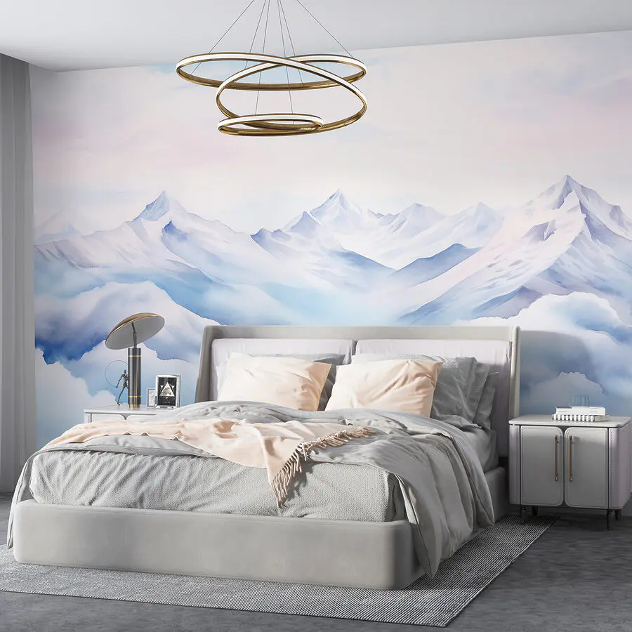 Imaginez que vous entrez dans une pièce et que vous avez l’impression d’avoir pénétré dans un paysage de rêve en aquarelle. Cette peinture murale, avec ses montagnes délicates et ses nuages fantaisistes, vous donne cette impression. C’est comme si les montagnes avaient invité les nuages à prendre le thé. Elle est parfaite pour tous ceux qui ont envie d’une touche de sérénité. Imaginez que vous vous réveillez avec ça tous les jours – c’est presque comme un doux câlin pour vos yeux. Placez-la dans votre salon ou votre chambre et laissez la magie opérer. C’est un petit coin de paradis paisible, directement sur votre mur.