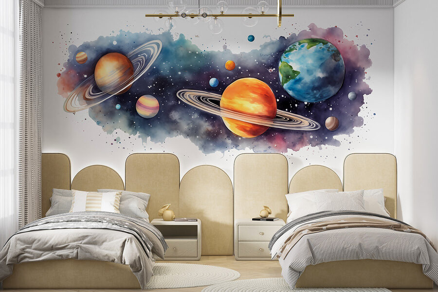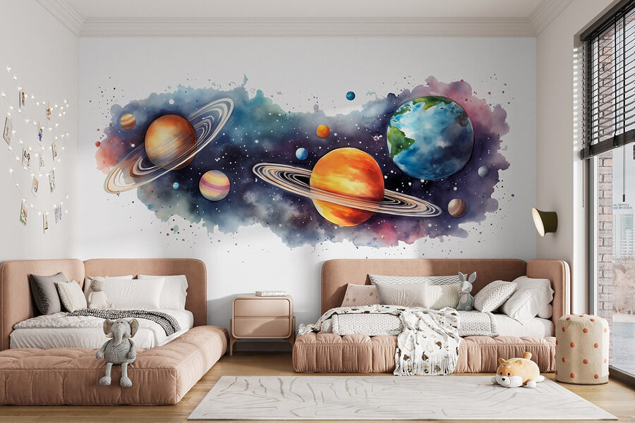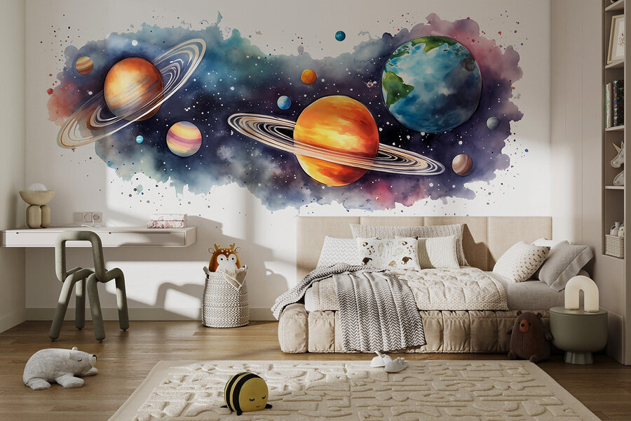 Vous avez toujours rêvé d’explorer l’univers depuis votre salon ? Cette peinture murale “Planètes et étoiles” apporte le cosmos directement sur vos murs, sans avoir besoin d’un vaisseau spatial ! Imaginez que vous sirotiez votre café du matin alors que Saturne et Jupiter vous tiennent compagnie. C’est comme si vous étiez aux premières loges de la galaxie. Petits et grands ressentiront l’émerveillement des étoiles à chaque fois qu’ils passeront devant. Parfait pour ajouter une touche de mystère et d’émerveillement à n’importe quel espace. Bonus : aucune gravité n’est requise. Qui aurait cru que la décoration d’intérieur pouvait être aussi brillante ?