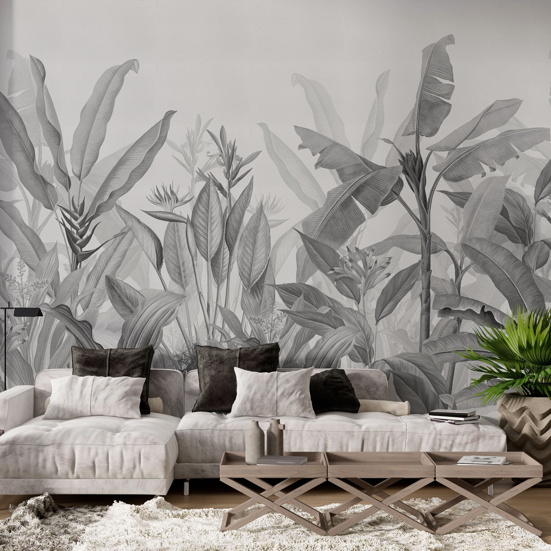 La jungle monochrome attend d’être explorée – cela ressemble à une aventure, n’est-ce pas ? Imaginez que vous vous réveillez tous les jours avec une jungle sereine dans votre chambre ! Cette peinture murale n’est pas seulement un décor, c’est une évasion. Avec ses feuilles chics en niveaux de gris, elle confère à votre espace une ambiance sophistiquée mais apaisante. Parfait pour ceux qui aiment la nature mais pas le bruit. Les amis seront curieux et peut-être même un peu envieux. Il suffit de penser aux matins tranquilles où l’on sirote un café en s’imprégnant de l’ambiance relaxante de la jungle. Une pièce qui évoque l’élégance avec une touche de sauvagerie.