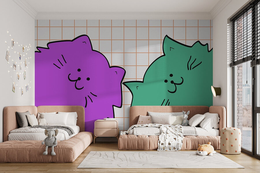 Imaginez deux chats duveteux se prélassant sur votre mur, peints dans de délicieuses nuances de violet et de vert. Cette peinture murale n’est pas seulement destinée aux amoureux des chats ; c’est une touche de fantaisie qui donne à n’importe quelle pièce l’impression d’être un refuge douillet. Imaginez : vous entrez dans la pièce après une longue journée et ces deux chatons pastel vous accueillent avec leur aura joyeuse. C’est comme s’ils chuchotaient : “Repose-toi, mon ami”. Parfaite pour un salon enjoué ou un coin de café excentrique, cette peinture murale est l’élément déclencheur de conversation par excellence. Et il n’y a pas besoin de litière !