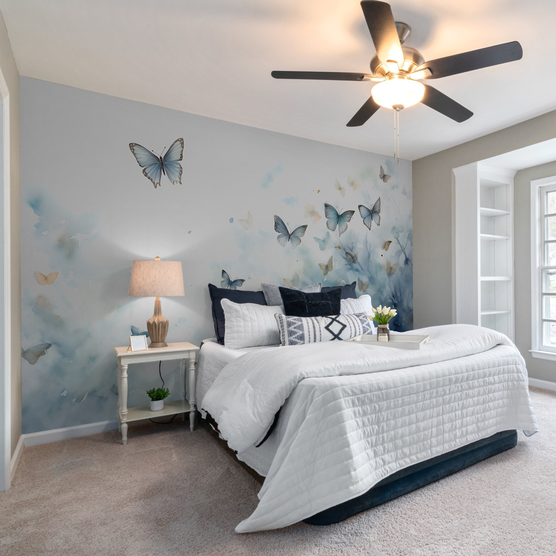 Imaginez que vous pénétrez dans un monde où les papillons dansent gracieusement dans un ciel d’aquarelle – ça fait rêver, non ? Cette peinture murale apporte exactement cette ambiance à votre espace. C’est comme si vous aviez une œuvre d’art de la nature à l’intérieur. Les bleus doux et les légers battements créent une atmosphère calme et enchanteresse. Parfait pour les moments où vous souhaitez vous asseoir et laisser votre esprit vagabonder. Imaginez un après-midi pluvieux, une tasse de thé à la main, et ces papillons qui ajoutent une touche de magie. C’est comme un rêve éveillé, directement sur votre mur.