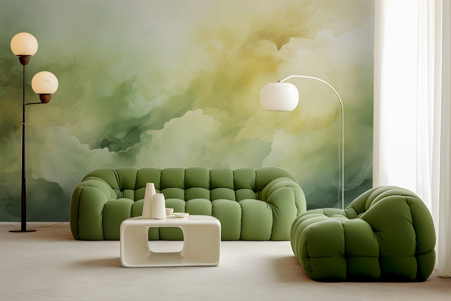 Imaginez que vous pénétrez dans une pièce baignée de teintes douces et vaporeuses qui semblent tout droit sorties d’un beau rêve éveillé. C’est exactement ce que fait “Misty Hues in Dreamy Flow” ! C’est comme si vous entriez dans un doux tourbillon de nuages embrassés par la lumière du jour. Parfait pour ceux qui aiment les décors uniques qui évoquent la sérénité – idéal pour un coin lecture ou une chambre à coucher de rêve. Les verts et les jaunes apaisants sont comme une étreinte chaleureuse lors d’un matin douillet. Vous pourriez bien vous retrouver perdu dans son charme artistique, une tasse de thé à la main, à vous demander où est passée la journée !