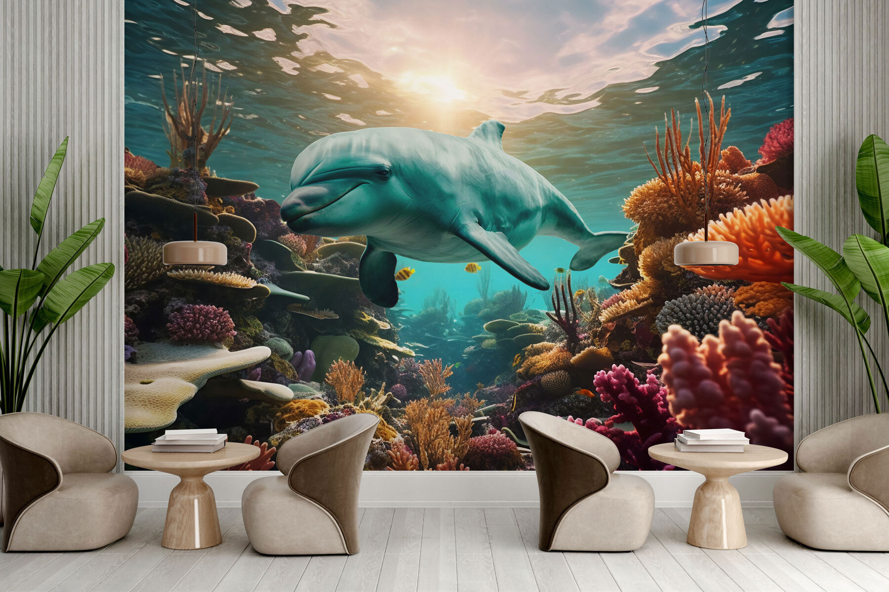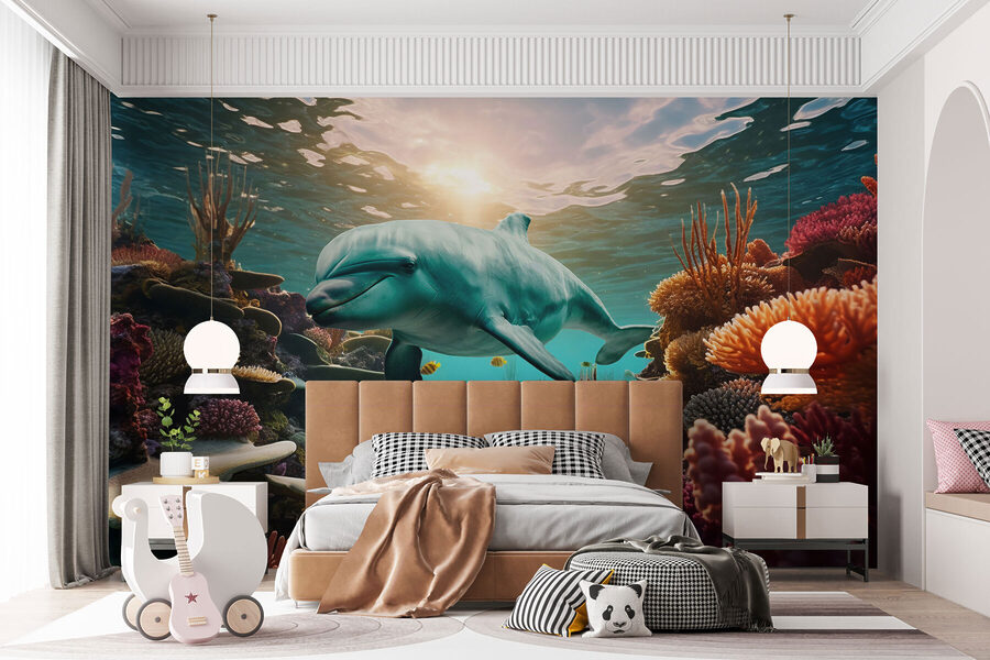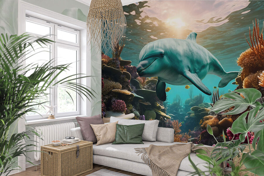 Plongez dans un bain de sérénité avec cette peinture murale représentant un dauphin nageant sereinement dans un océan vibrant. Imaginez les murs transformés en une échappée sous-marine de rêve, animée par des coraux colorés et des poissons joyeux. C’est comme si vous aviez une fenêtre sur un océan lumineux et paisible dans votre maison. Vos amis ne manqueront pas de s’arrêter et de vous regarder, se demandant s’ils sont entrés dans un aquarium. Imaginez que vous vous réveillez devant cette scène étonnante et que vous vous sentez un peu plus détendu chaque jour. Il ne s’agit pas d’un simple décor, mais d’une aventure quotidienne qui ne demande qu’à être vécue. Parfaite pour ajouter une ambiance de bord de mer, cette peinture murale apporte du soleil et de la joie dans n’importe quel espace !