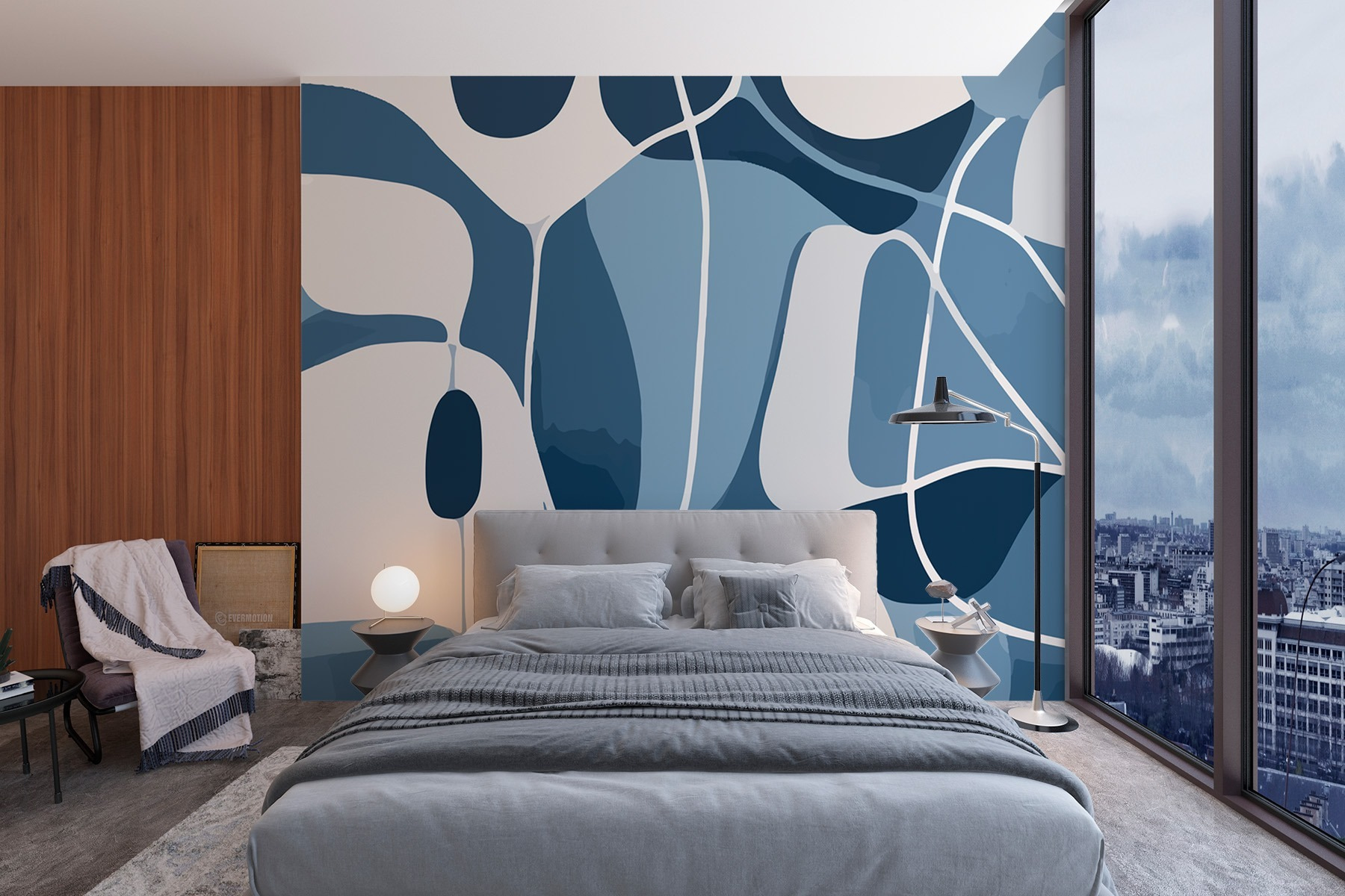Imaginez : une pièce confortable avec cette peinture murale – des tourbillons bleus et blancs qui vous font penser à des vagues ou à des nuages qui flottent. C’est comme une douce étreinte de la part d’une brise fraîche. Des amis passent, surpris, comme s’ils étaient tombés dans un pays des merveilles de l’art contemporain. C’est le moment où l’on se dit “wow, je ne l’avais pas vu venir”, dans le bon sens du terme. La danse géométrique sur votre mur est à la fois apaisante et intrigante, parfaite pour un après-midi de farniente avec un livre ou un dîner animé. Et qui n’aime pas un peu de 3D funky pour pimenter l’espace ? Une toile de fond parfaite pour vivre avec audace et se détendre confortablement.