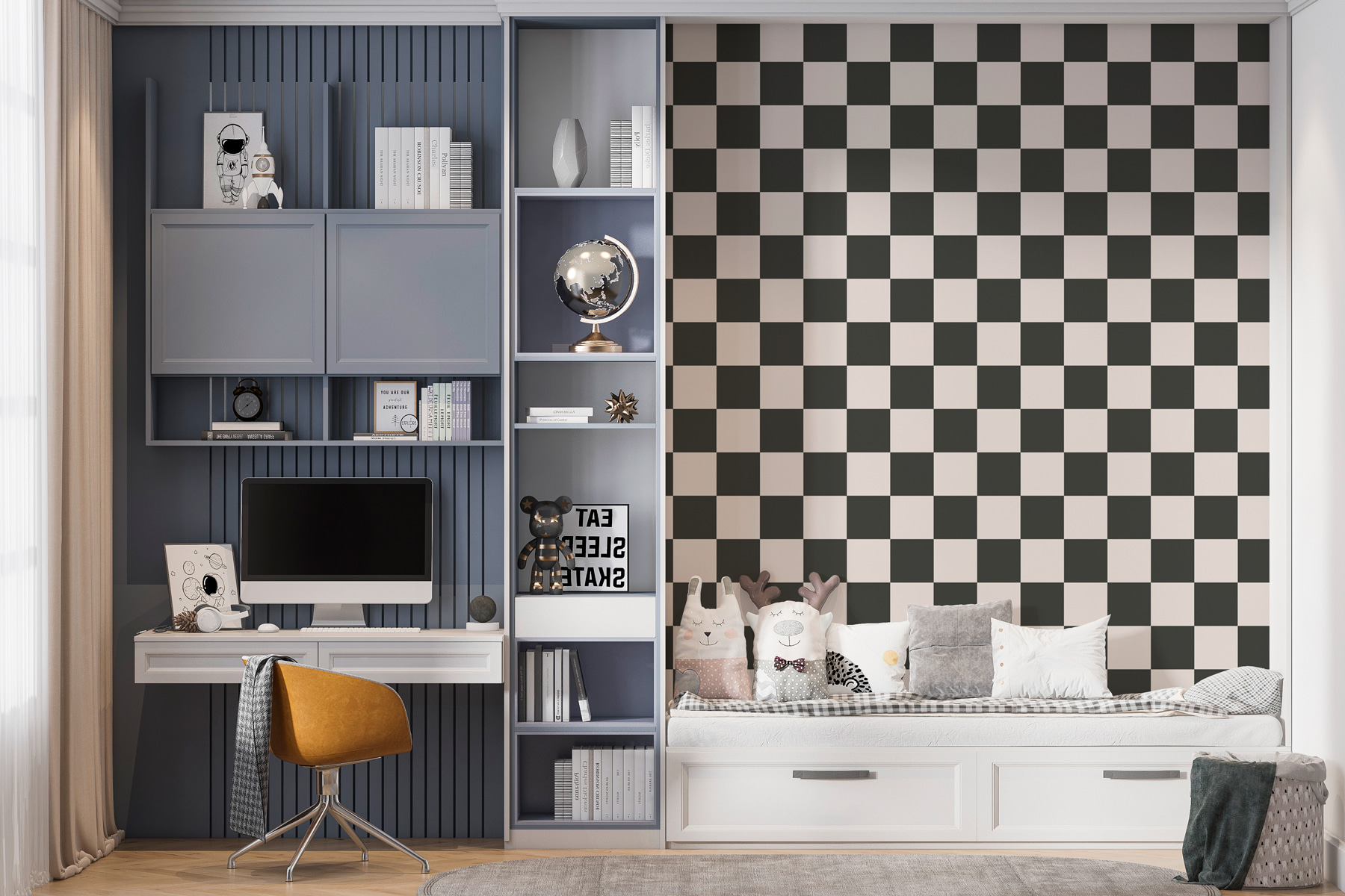 Transformer un espace peut s’apparenter à de la magie, n’est-ce pas ? Cette peinture murale, avec son motif en damier noir et blanc saisissant, est comme un jeu d’échecs sophistiqué. Imaginez que vous entrez dans une pièce dont les murs chuchotent l’élégance et le style – très chic !