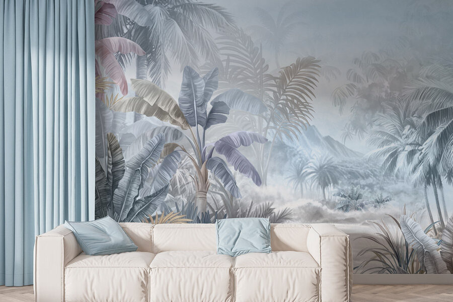 Transformez n’importe quel espace en un lieu d’évasion tranquille grâce à cette superbe peinture murale de la jungle. Imaginez que vous pénétrez dans une forêt tropicale sereine où les feuilles luxuriantes se balancent doucement et où les couleurs douces créent une atmosphère apaisante. C’est comme une mini-vacance sur votre mur – pas besoin de billets d’avion ! Le délicat mélange de bleus, de verts et de pastels doux est rafraîchissant, presque comme une brume matinale dans un paradis tropical. Que ce soit dans un salon confortable ou une chambre à coucher ensoleillée, cette peinture murale insuffle la vie et la détente dans la pièce. Parfait pour les amoureux de la nature et les rêvasseurs ! De plus, elle invite le voisin qui dit toujours qu’il a besoin de plus de nature dans sa vie. Vous le connaissez !