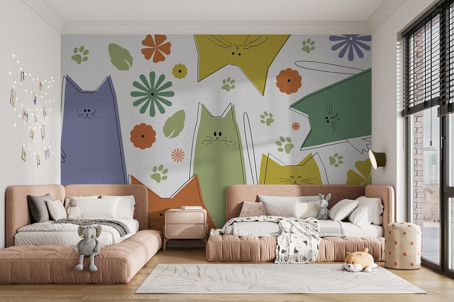 Apportez une touche de fantaisie dans n’importe quelle pièce avec cette ravissante peinture murale représentant une bande de chats excentriques gambadant parmi des fleurs et des feuilles éclatantes. Imaginez ces charmants petits visages qui sautent d’un mur à l’autre et dont l’énergie enjouée illumine votre espace. Parfait pour les amoureux des chats – qui ne souhaite pas que sa décoration reflète un peu de personnalité ? C’est comme avoir un animal de compagnie sans avoir à s’occuper de la litière ! Imaginez des soirées douillettes dans un paradis pour chats, à siroter un thé et à vous imprégner de ces ondes douces. Cette peinture murale ne se contente pas de décorer ; elle raconte une histoire de joie et d’espièglerie qui donne à chaque espace l’impression d’être chez soi.