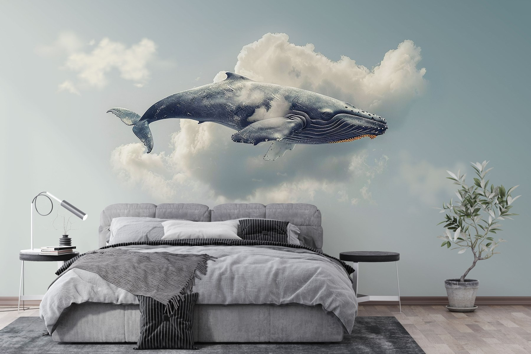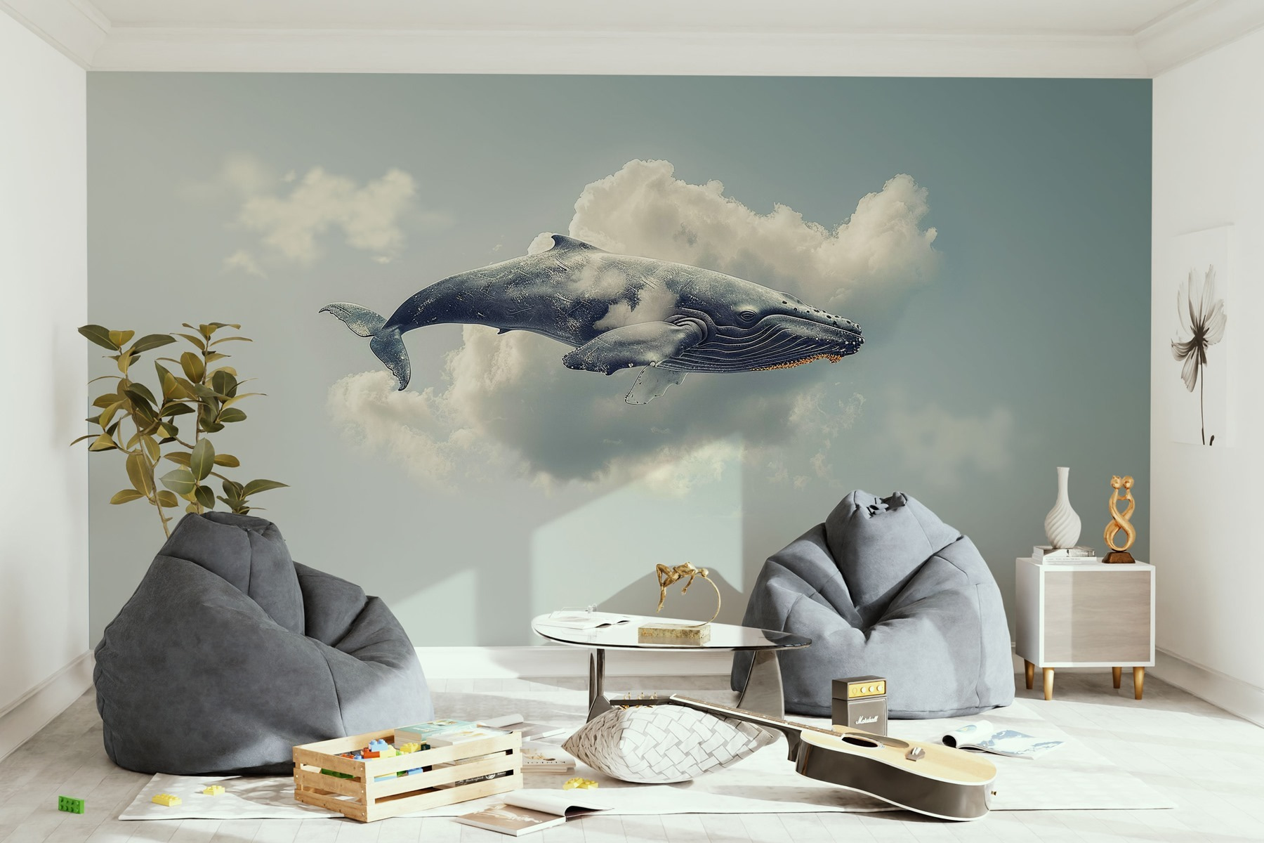 Imaginez une baleine géante, non pas dans l’océan, mais glissant paisiblement à travers des nuages cotonneux. Cette peinture murale, intitulée “Murale baleine volant dans le ciel”, ajoute une touche fantaisiste à n’importe quel espace. Imaginez-la dans un salon confortable ou dans une chambre d’enfant. C’est comme si vous apportiez un morceau de vie marine de rêve directement sur votre mur !