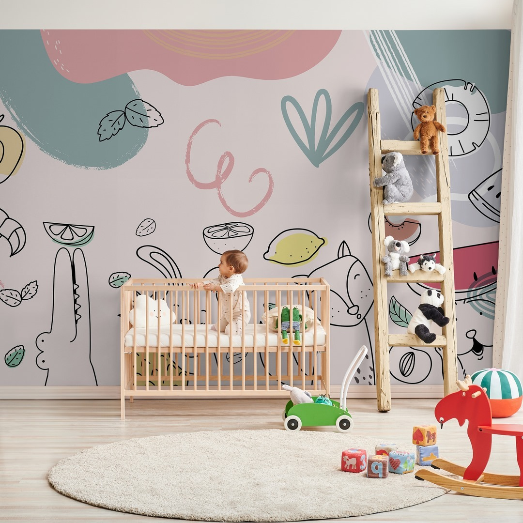 Illuminez n’importe quelle pièce avec cette délicieuse peinture murale représentant des animaux de bande dessinée tenant joyeusement leurs fruits préférés. Imaginez un flamant rose effronté savourant une tranche de pastèque ou un lapin berçant un ananas entier – c’est comme une fête des fruits sur votre mur ! Ce motif fantaisiste apporte une ambiance ludique, parfaite pour une chambre d’enfant ou un coin douillet. Imaginez que vous entrez et que vous vous sentez instantanément plus léger, comme si vous étiez entré dans une journée ensoleillée à la plage. C’est une explosion de plaisir et de couleur qui pourrait bien vous donner envie de manger une salade de fruits. Qui ne voudrait pas vivre parmi ces amis fruités ?