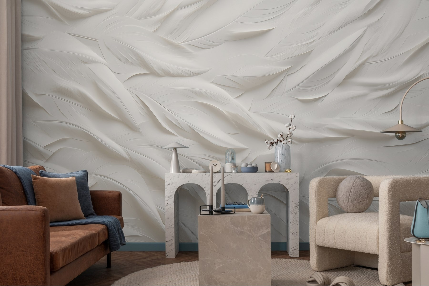 Papier peint Motif de plumes blanches sur une surface blanche (UGS: w02008)
