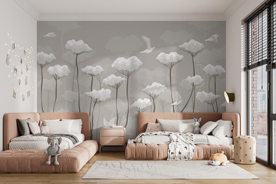 Transformez votre espace avec cette jolie peinture murale représentant des oiseaux s’envolant dans un ciel de rêve. Imaginez que vous vous réveillez devant une scène qui éveille un sentiment de liberté – c’est comme si vous aviez la nature chez vous. Les couleurs douces et les arbres fantaisistes créent une ambiance apaisante, parfaite pour se détendre ou recevoir. Imaginez un après-midi douillet, une tasse de thé chaude à la main, pendant que vous regardez les volées imaginaires passer. Il ajoute une touche de plein air sans les moustiques gênants ! Qu’il s’agisse d’une chambre à coucher ou d’un salon, cette peinture murale invite à une évasion paisible au pays des merveilles de la forêt. Laissez vos murs raconter une histoire !