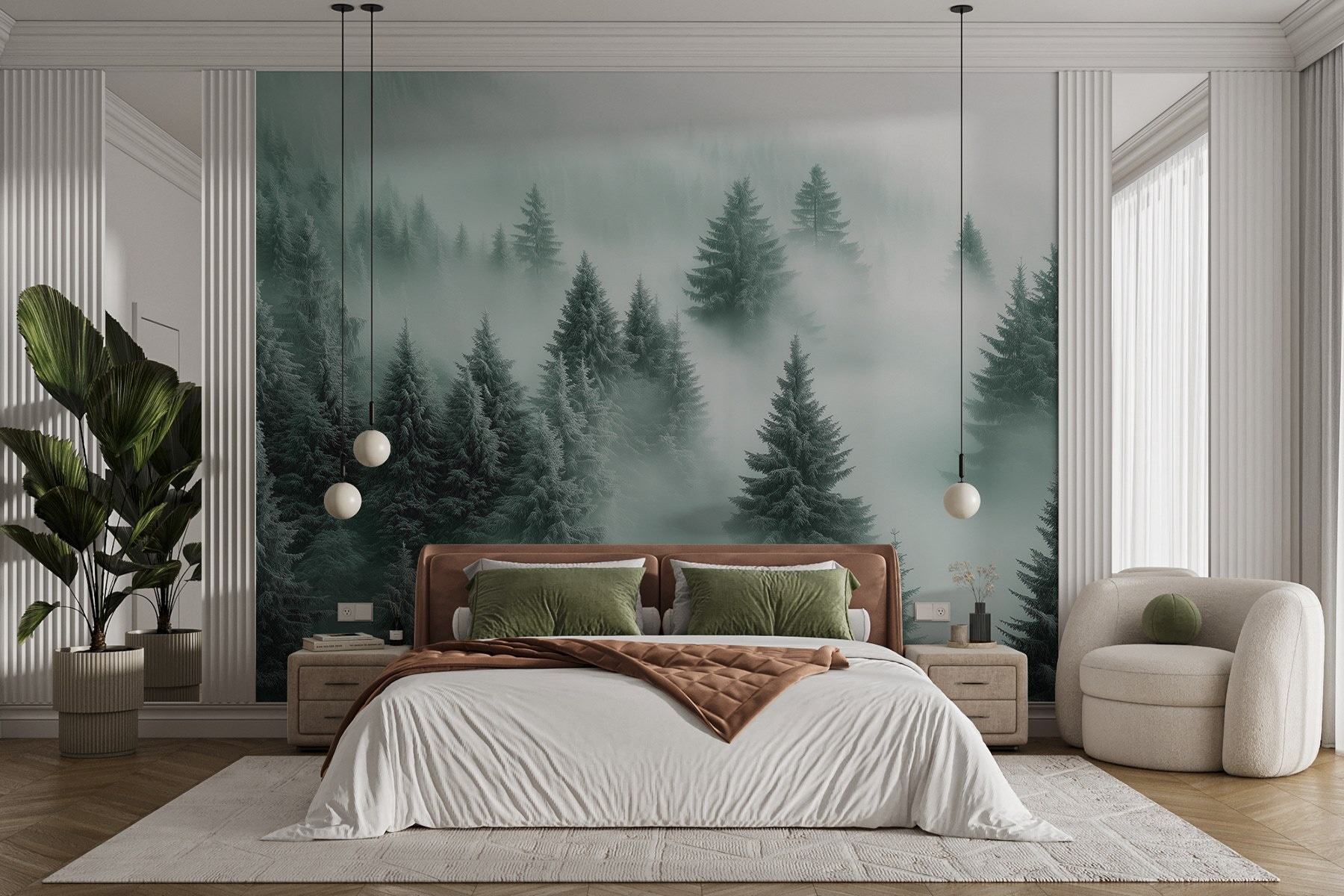 Imaginez que vous entrez dans une cabane confortable, chaleureuse et accueillante, et que vous êtes accueilli par cette superbe peinture murale d’arbres dans le brouillard. C’est comme si vous faisiez entrer la nature dans votre salon, mais sans le risque qu’un écureuil ne vienne perturber votre fête. Les verts doux et les vibrations brumeuses donnent une impression de calme et de sérénité, parfaite pour les dimanches paresseux ou après une longue journée. Imaginez-vous en train de vous installer avec un bon livre, une tasse de thé à la main, et de vous perdre dans ce paysage de rêve. C’est aussi un sujet de conversation : les invités seront intrigués. S’agit-il d’une forêt magique ? Un portail secret ? C’est vous qui décidez. Ajouter cette peinture murale, c’est partager une petite tranche de tranquillité avec tous ceux qui entrent dans votre espace.