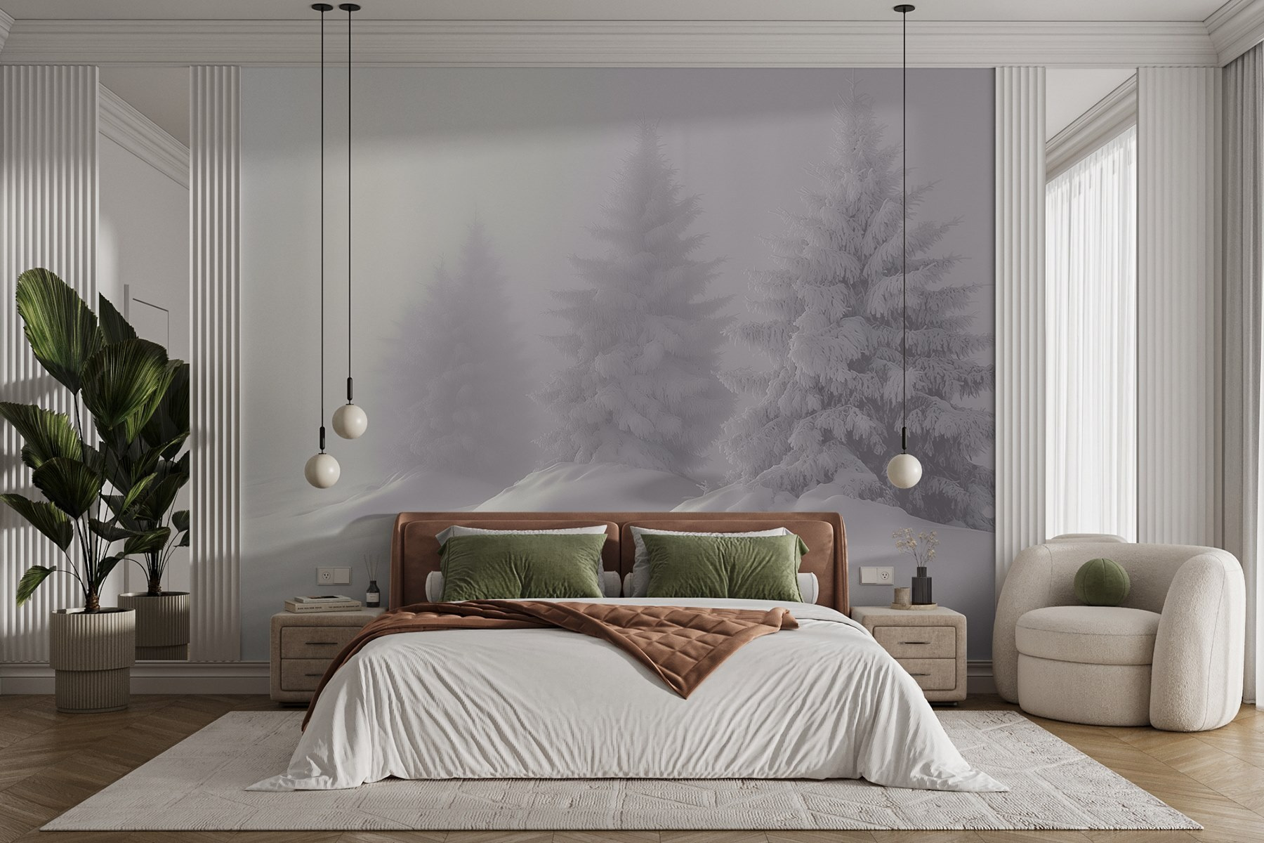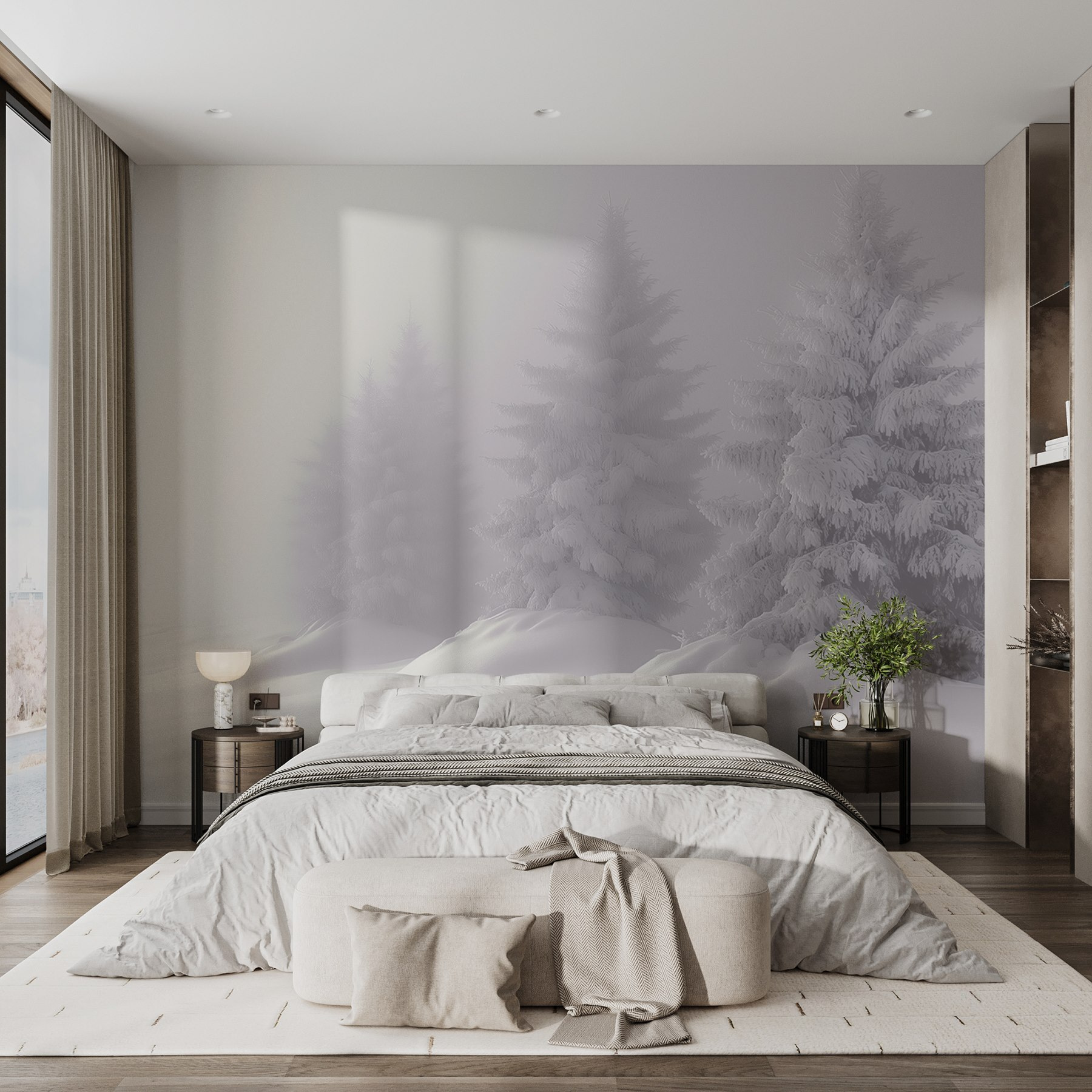 Transformez n’importe quelle pièce en un pays des merveilles hivernal serein grâce à cette superbe peinture murale d’arbres enneigés. Imaginez que vous vous réveillez devant une scène qui ressemble à une douce étreinte de la nature, dans votre propre maison. Les blancs doux et les gris froids créent une atmosphère apaisante, parfaite pour des nuits douillettes avec une tasse de chocolat chaud. C’est comme si vous apportiez une forêt tranquille sur vos murs, invitant une touche de tranquillité et de magie. Imaginez des amis attirés par la scène, partageant des histoires sur les randonnées enneigées ou leurs dernières aventures de construction de bonhomme de neige. Cette peinture murale ne se contente pas de décorer, elle raconte une histoire.