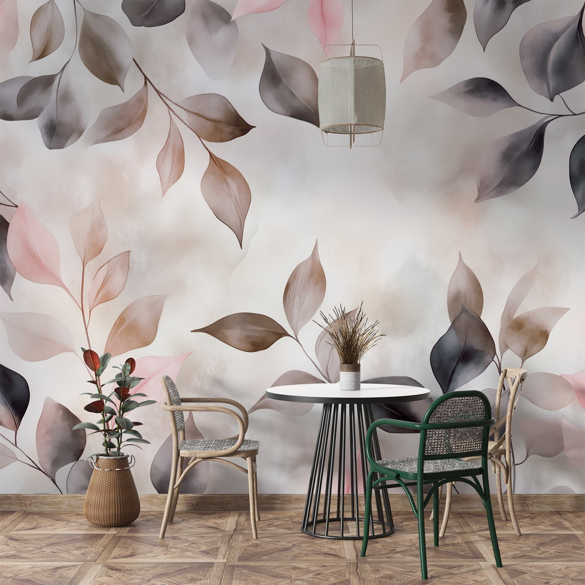 Transformez n’importe quelle pièce en une retraite confortable avec “Delicate Leaves in Soft Hues” (Feuilles délicates aux teintes douces). Cette peinture murale apporte la beauté de la nature à l’intérieur, enveloppant votre espace de pastels apaisants et d’ombres subtiles. Imaginez que vous sirotiez une tasse de thé en vous laissant bercer par l’ambiance douce qu’elle crée. C’est comme avoir un mur de jardin serein – sans le travail de jardinage ! Le style aquarelle ajoute une touche rêveuse, parfaite pour rêvasser ou simplement prendre un moment pour se détendre. C’est aussi un excellent moyen d’engager la conversation – vos invités se demanderont peut-être quelle est la couleur de ces mystérieuses feuilles ! En résumé, le charme de la nature est à portée de main, prêt à embellir n’importe quel mur.